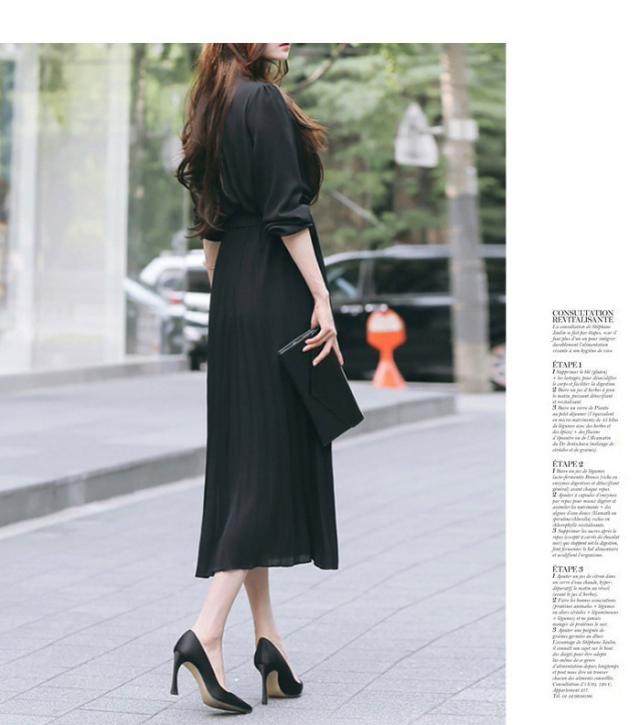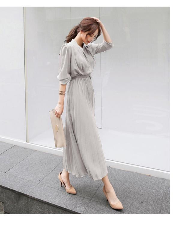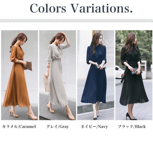 ウエストマークプリーツワンピース ミモレ ミモレ丈 ロング ロング丈 マキシ マキシ丈 9分丈 袖あり 5分袖 五分袖 襟なし タイト 細身 かわいい 大人可愛い きれいめ シンプル カジュアル 大人 上品 おしゃれ お洒落 かっこいい こなれ感 ラブリー キュート ガーリー 存在感