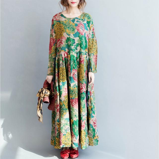 ワンピース フレアワンピース ロング ロング丈 マキシ マキシ丈 袖あり 長袖 Uネック ラウンドネック 襟なし フレア セミフレア Aライン プリーツ かわいい 大人可愛い きれいめ シンプル カジュアル 大人 上品 おしゃれ レトロ 大人女子 こなれ感 ラブリー キュート ガーリー 個性的 クール エレガント モダン 主役級 存在感 花柄 フラワー 春 秋 10代 20代 レディース デート お出かけ 女子会 休日 普段使い 韓国 オルチャン ファッション コーデ スタイル 楽ちん モテ 体系カバー
