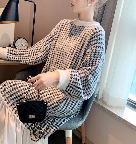 ワンピース ワンピドレス ロング ロング丈 袖あり 長袖 ラウンドネック 襟なし 切り替えデザイン ポリエステル かわいい 大人可愛い シンプル カジュアル 大人 おしゃれ アジアン 大人女子 こなれ感 ラフ 格子柄 千鳥格子 秋 冬 10代 20代 30代 レディース 女性用 ママ