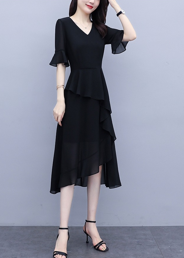 アシンメトリー ティアード 半袖 フォーマル ドレス パーティードレス パーティドレス 結婚式ドレス 結婚式のドレス ミモレ ミモレ丈 袖あり 5分袖 五分袖 フレアスリーブ Vネック Aライン フレア シフォン 透け感 大人可愛い きれいめ シンプル 大人 上品 おしゃれ 大人女子 モード系 エレガント モダン フォーマル とろみ感 抜け感 クラシック 清楚 無地 10代 20代 30代 40代 50代 60代 パーティー ホテル 二の腕カバー 定番 結婚式 お呼ばれ 入学式 入園式 卒業式 卒園式
