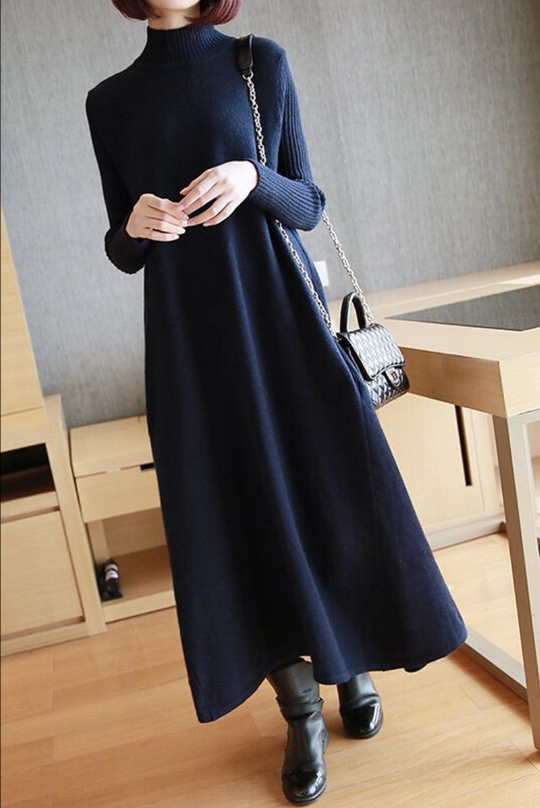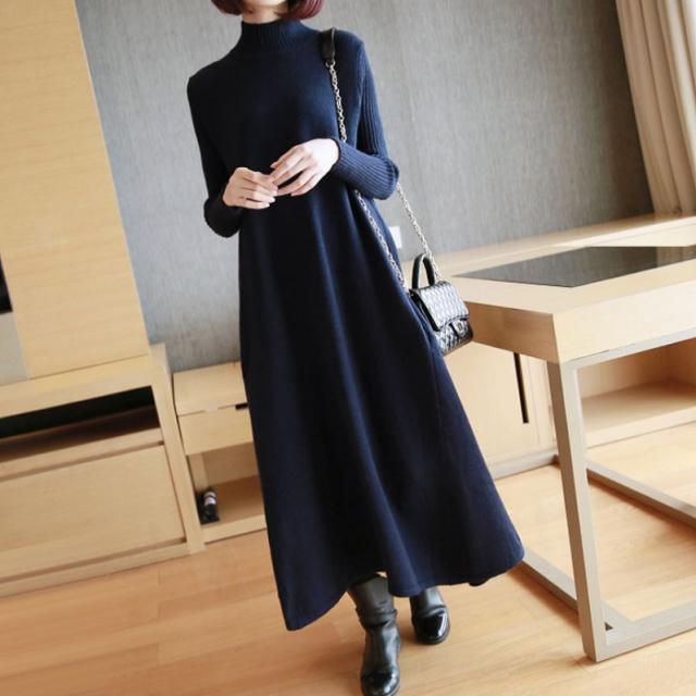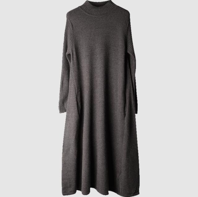 プラスサイズ シック トップス スカート ワンピース セーター プルオーバー ロングスカート ロング丈 長袖 レギュラースリーブ ハーフタートル スリム Aライン ルーズウエスト ポケット ニット 異素材MIX シンプル 上品 おしゃれ かっこいい 大人女子 クール エレガント 無地 秋 冬 20代 30代 レディース お出かけ 休日 旅行 ショッピング 普段使い ファッション コーデ スタイル 暖かい モテ 脚長 フリーサイズ ゆったり ワンサイズ 大人カラー 黒 ブラック 灰色 グレー ロイヤルブルー