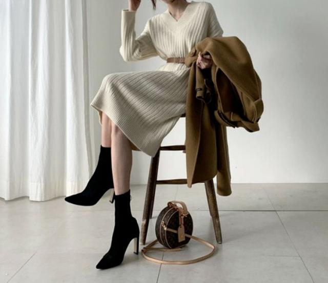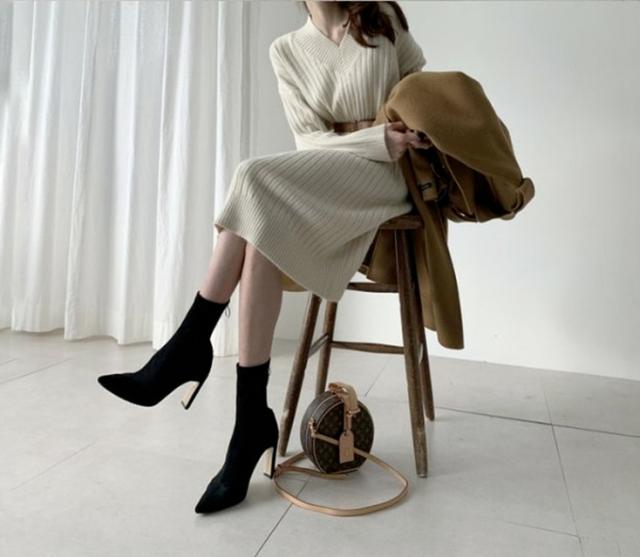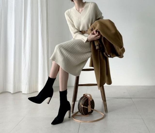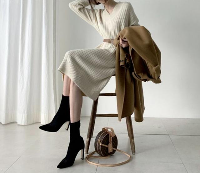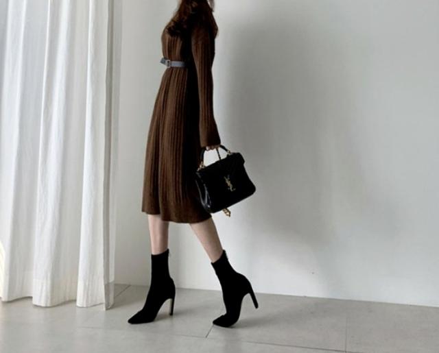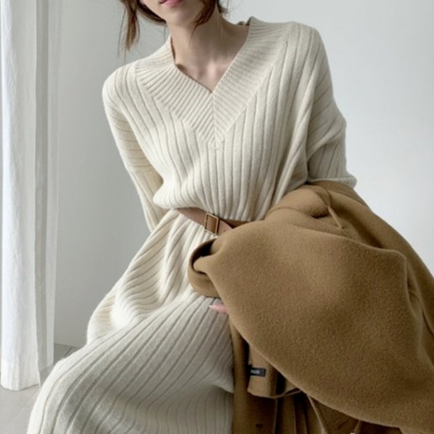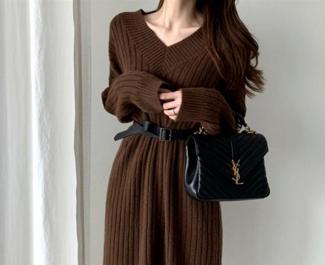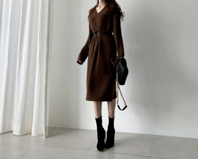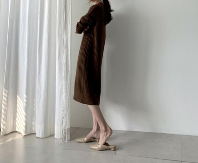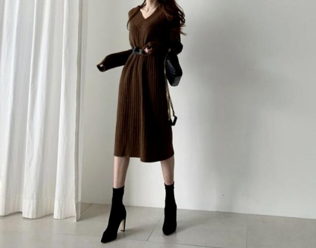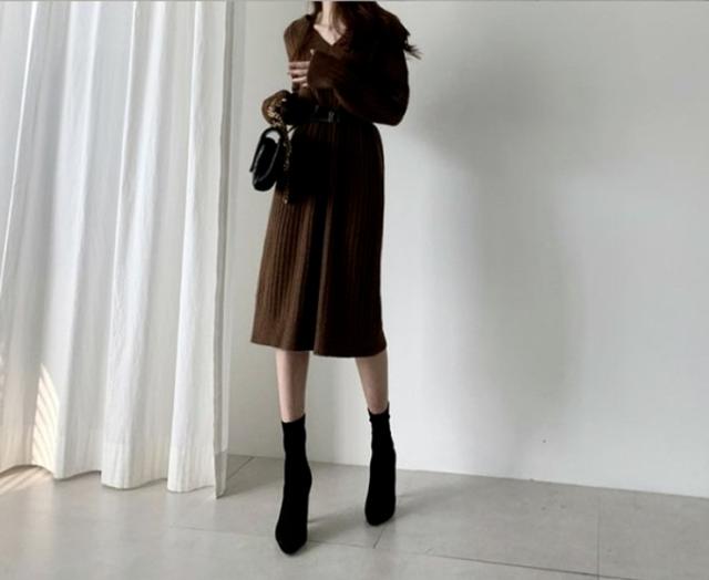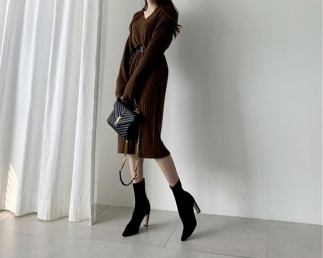 ブーツやパンプスと合わせて、おしゃれに着こなせる、ニットロングワンピース。