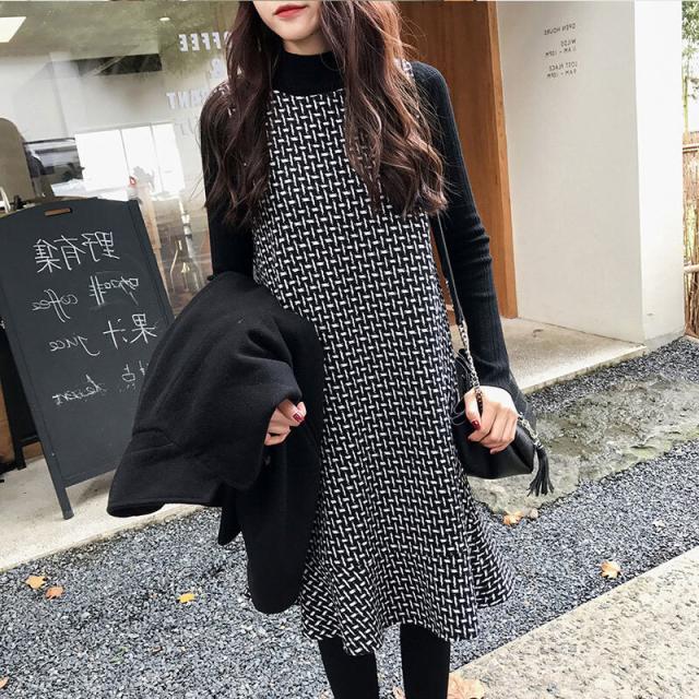 千鳥格子 ジャンパースカート シンプル ニット セットアップ カットソー ニットソー 膝丈 ひざ丈 袖あり 長袖 ハイネック 切り替えデザイン ファスナー 2点セット ツーピース かわいい 大人可愛い きれいめ カジュアル 大人 上品 おしゃれ 大人女子 こなれ感 ラフ ラブリー キュート モード系 エレガント 秋 冬 入学式 入園式 卒業式 卒園式 10代 20代 30代 40代 マタニティ オフィス ビジネス OL 通勤 デート お出かけ パーティー イベント 大きいサイズ ゆったり ゆる サイズ
