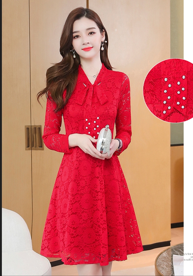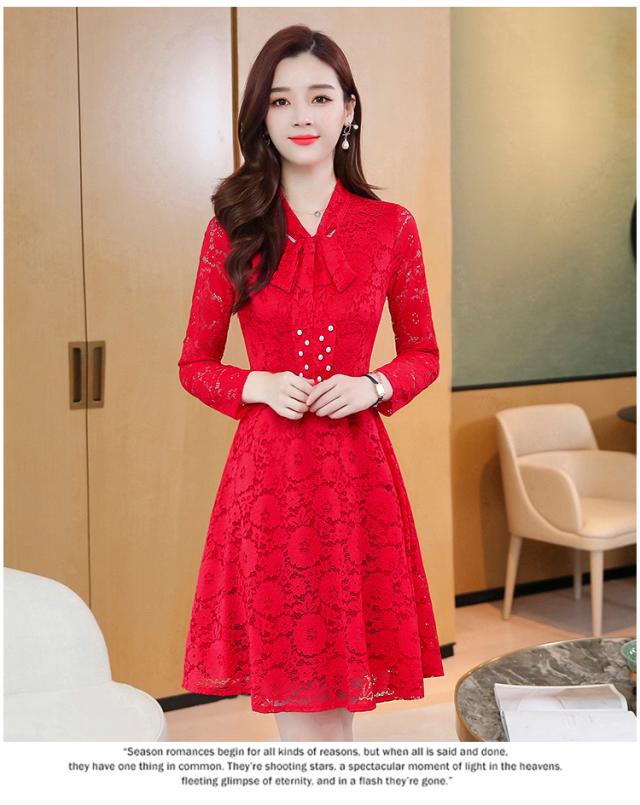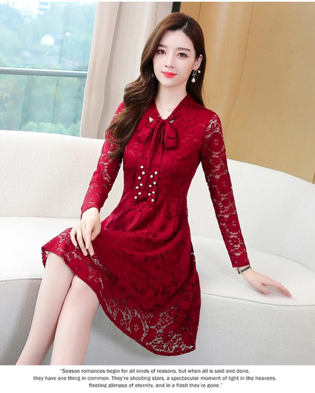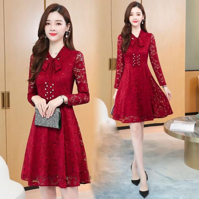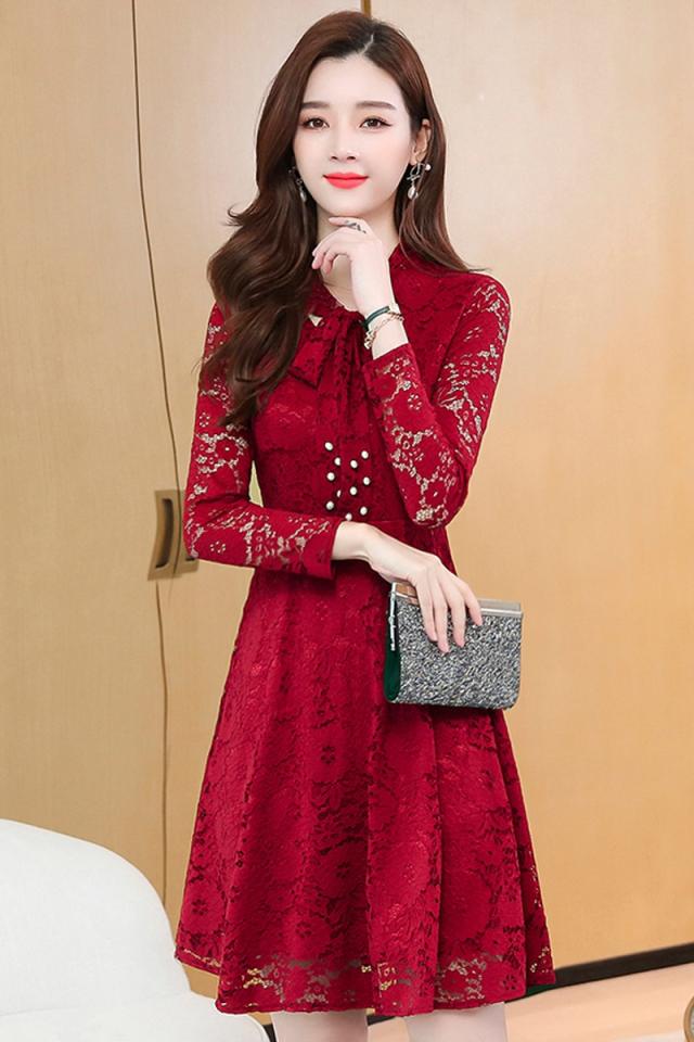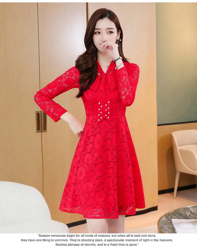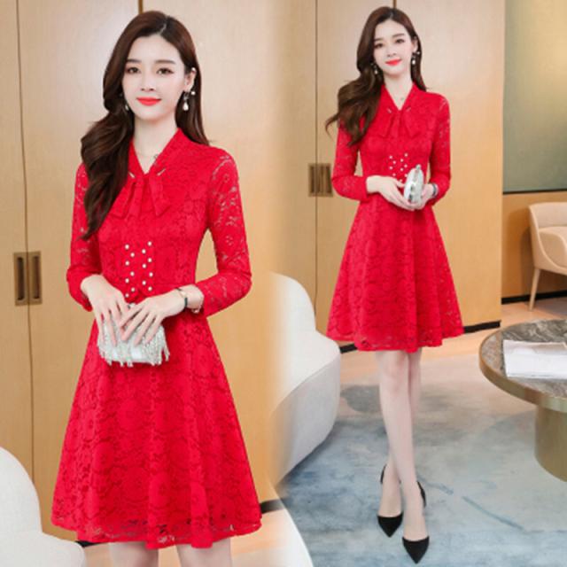 レースワンピース ワンピース ナイトドレス フレアスカート フレアワンピース ワンピドレス 膝丈 ひざ丈 膝上 袖あり 長袖 Vネック リボンタイ タイト 細身 Aライン レース リボン ベルベット きれいめ 大人 上品 おしゃれ お洒落 大人女子 セクシー エレガント 主役級 秋 冬 結婚式 二次会 披露宴 20代 30代 レディース パーティー イベント ホテル レストラン 暖かい モテ M L XL 2XL 3XL 4XL 5XL 黒 ブラック 赤 レッド 紺 ネイビー ワインレッド 大人カラー