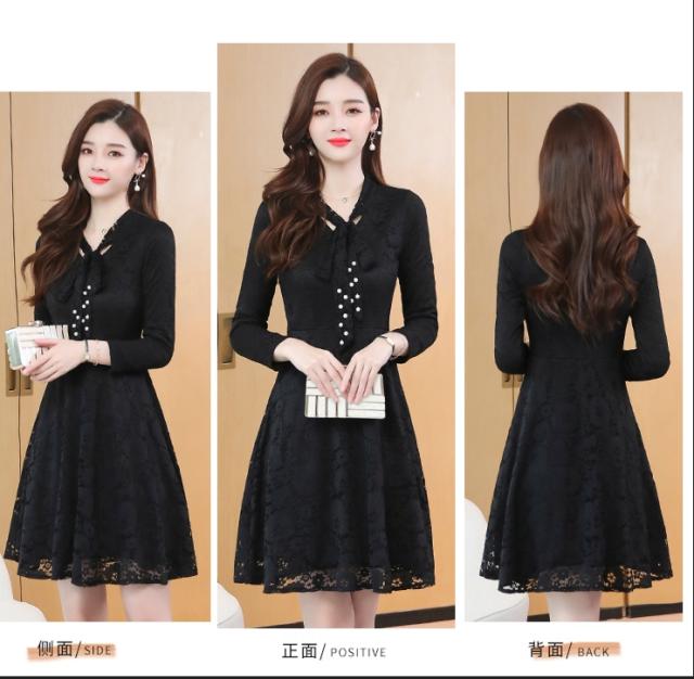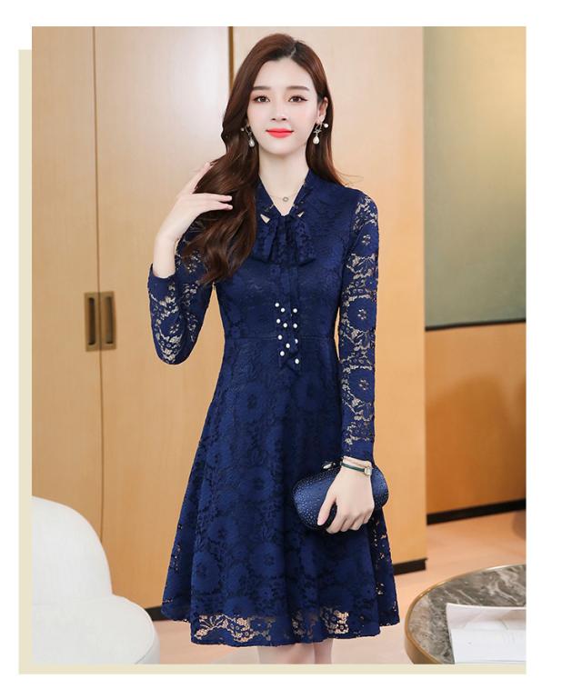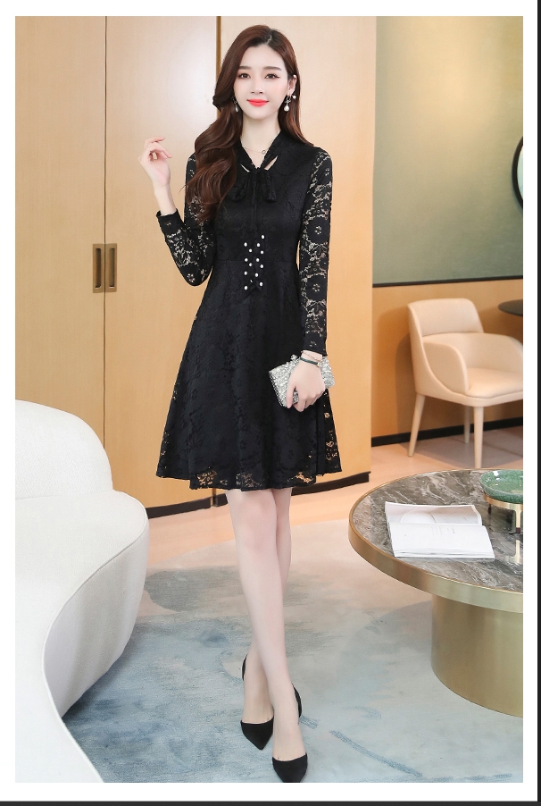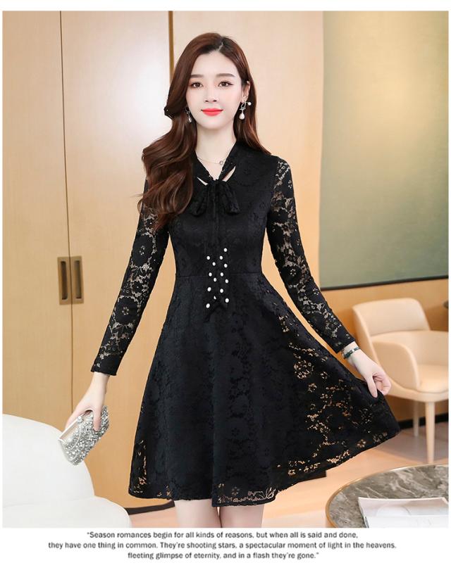 レースワンピース ワンピース ナイトドレス フレアスカート フレアワンピース ワンピドレス 膝丈 ひざ丈 膝上 袖あり 長袖 Vネック リボンタイ タイト 細身 Aライン レース リボン ベルベット きれいめ 大人 上品 おしゃれ お洒落 大人女子 セクシー エレガント 主役級 秋 冬