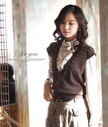 ビーズが上品なアクセントになり、1枚で着映えするニットに。