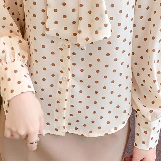 トップス シャツ ブラウス 長袖 リボン かわいい 大人可愛い きれいめ シンプル カジュアル 大人 上品 おしゃれ お洒落 大人可愛い 大人女子 こなれ感 ガーリー エレガント 主役級 存在感 フォーマル ドット柄 水玉 春 秋 誕生日 クリスマス バレンタイン 10代 20代 30代