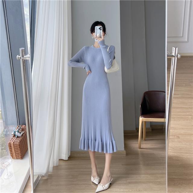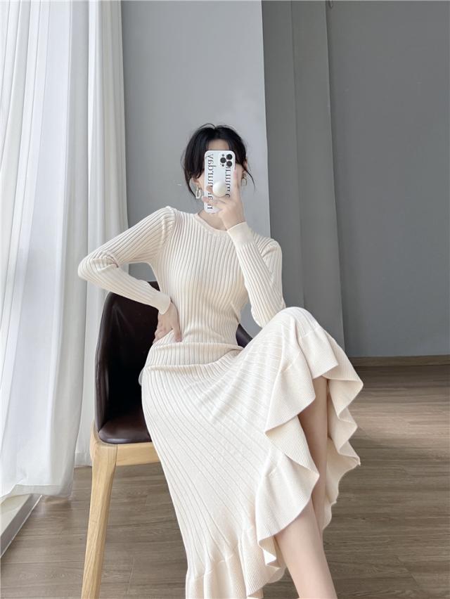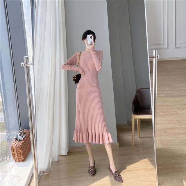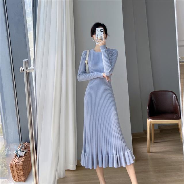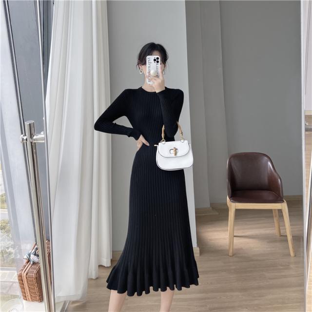 上品 プリーツ ロング ニット ワンピース ニットスカート ロング丈 袖あり 長袖 Uネック ラウンドネック クルーネック フレア 切り替えデザイン リブ 伸縮性 かわいい 大人可愛い きれいめ シンプル カジュアル 大人 大人女子 こなれ感 ラブリー キュート モード系 エレガント モダン フォーマル 無地 秋 冬 10代 20代 30代 40代 50代 60代 オフィス ビジネス OL 通勤 デート お出かけ 休日 パーティー イベント ホテル レストラン 着回し 普段使い 韓国 楽ちん 体系カバー