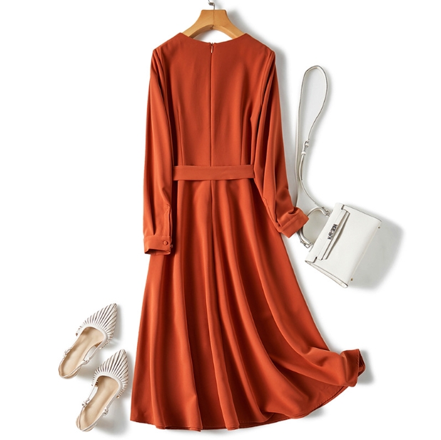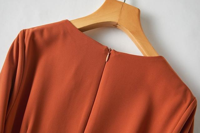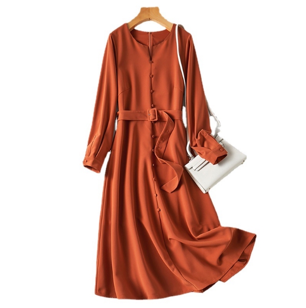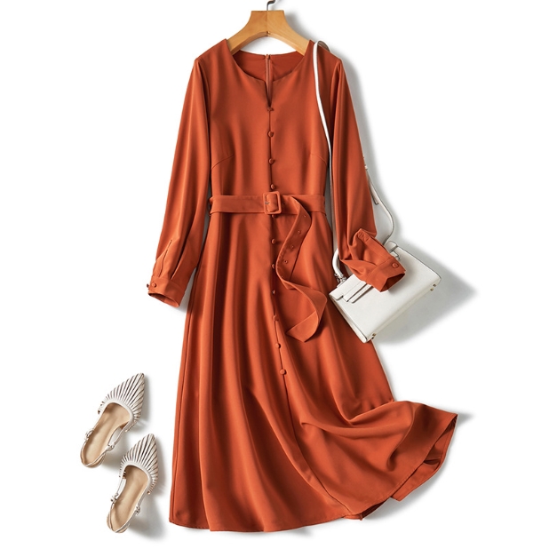 ワンピース ワンピドレス 膝下 ロング ロング丈 袖あり 長袖 ラウンドネック 襟なし Aライン シフォン ベルト ファスナー ポリエステル かわいい 大人可愛い きれいめ シンプル 大人 上品 おしゃれ お洒落 アジアン エスニック 大人女子 ラフ フォーマル 無地 秋 冬 誕生日 20代 30代 レディース 女性用 通勤 デート お出かけ 公園デビュー 女子会 お泊まり 休日 パーティー イベント 旅行 ホテル ガーデン レストラン 普段使い 楽ちん サイズ M L XL 2XL 色展開 オレンジ