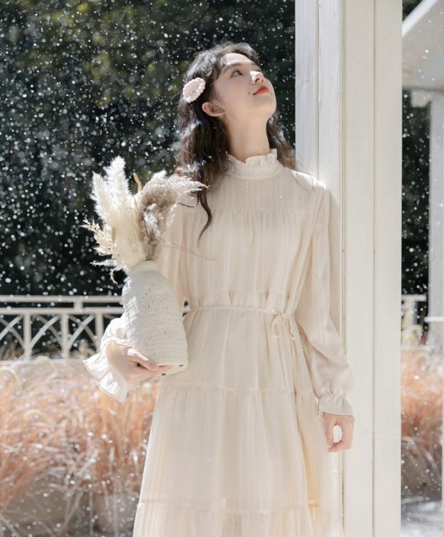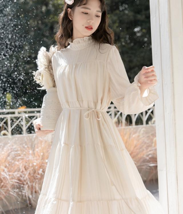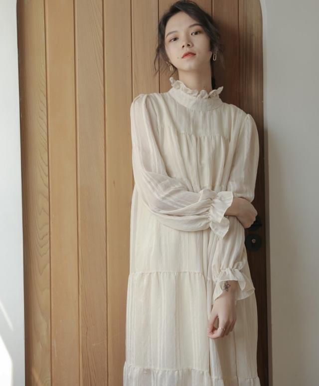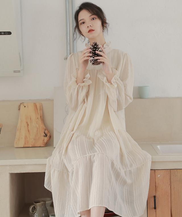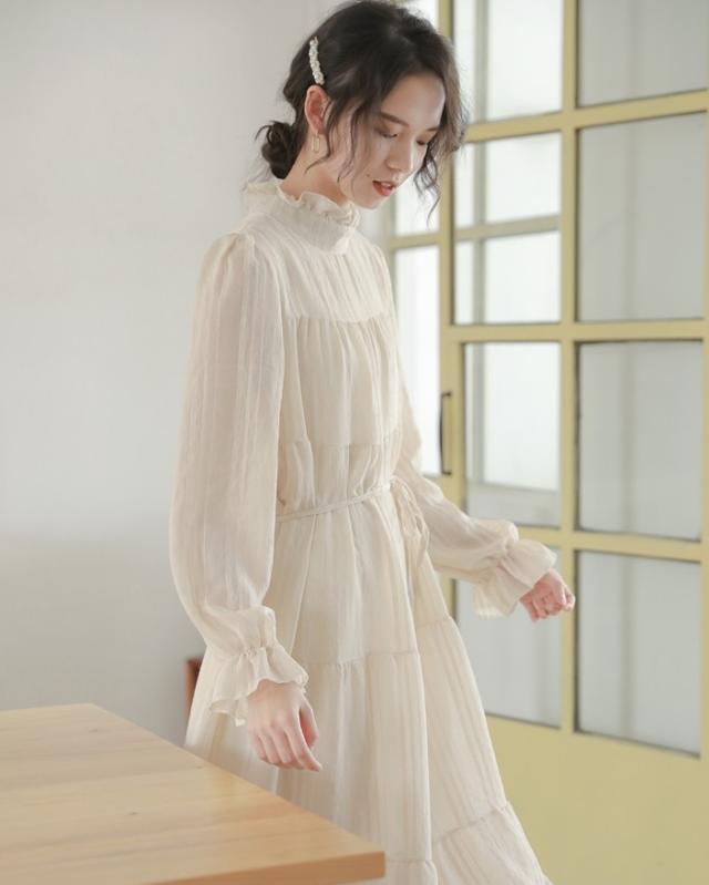 ワンピース ワンピドレス 膝下 ロング ロング丈 袖あり 長袖 ハイネック 襟なし Aライン リボン ウエストリボン 透け感 綿 薄手 かわいい 大人可愛い きれいめ シンプル カジュアル 大人 アジアン エスニック 大人女子 ラフ キュート 抜け感 無地 春 秋 誕生日 10代 20代 レディース 女性用 通勤 デート お出かけ 公園デビュー 女子会 お泊まり 休日 イベント リゾート 旅行 ホテル ガーデン レストラン 着回し 普段使い サイズ フリーサイズ 色展開 オフホワイト 春カラー 秋カラー