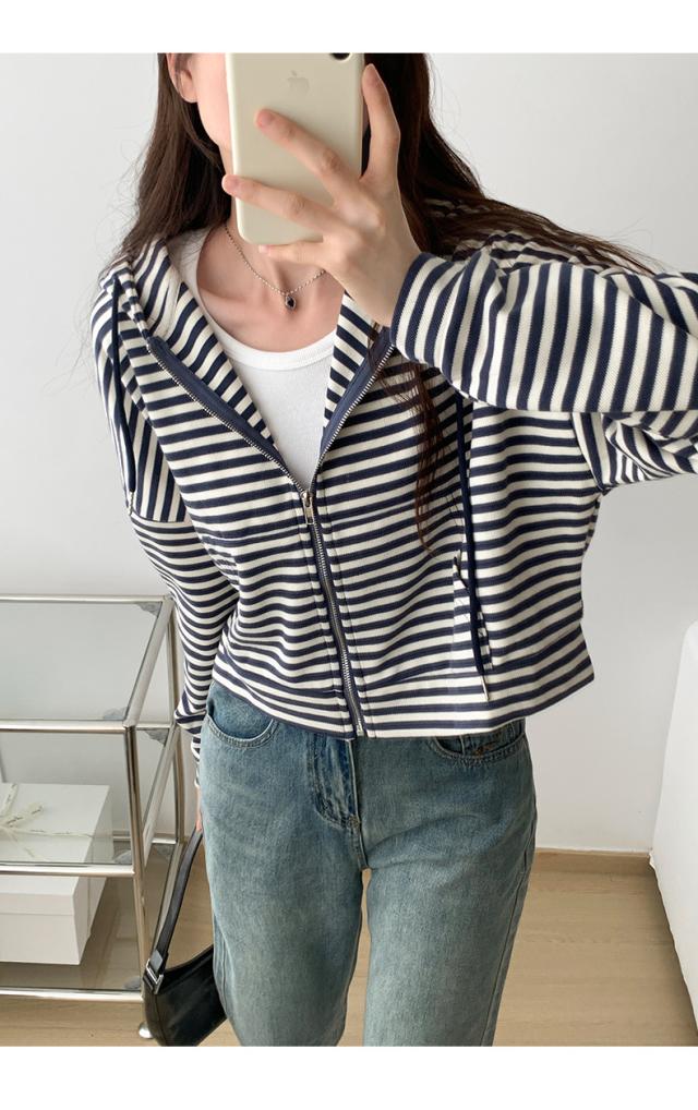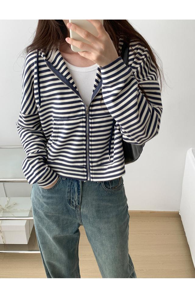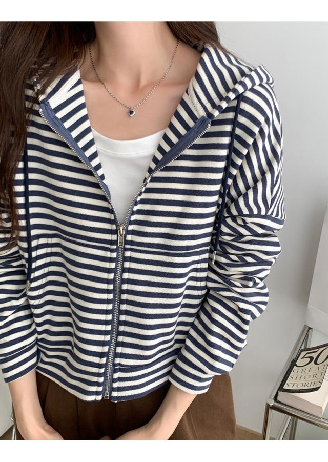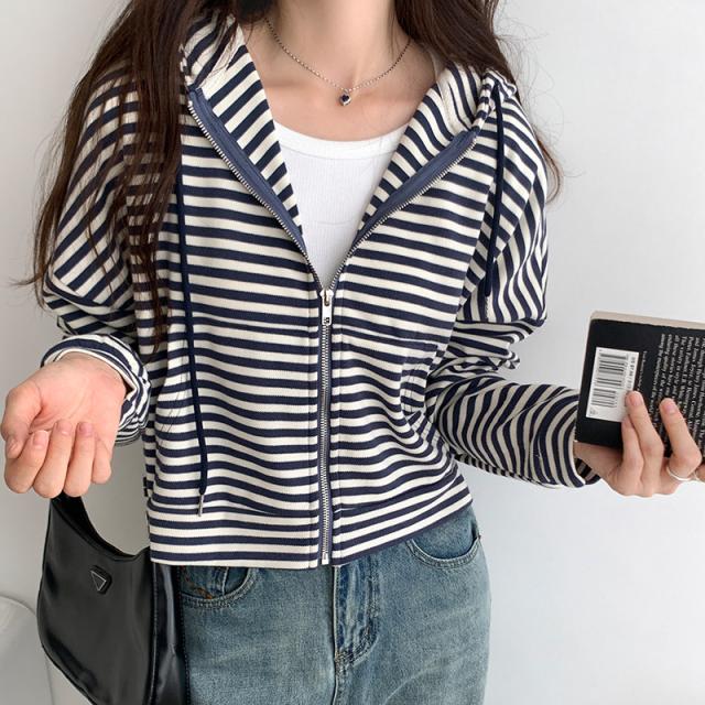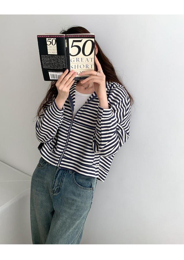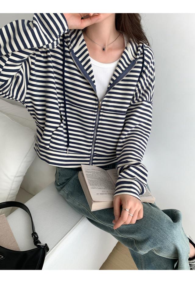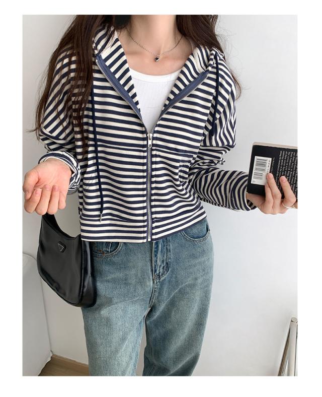 ジップパーカー パーカー ボーダー柄 アウター ジップアップ ゆったり フード付き 春秋 レディース お洒落 スポーツ カジュアル ゆったり スポーツ