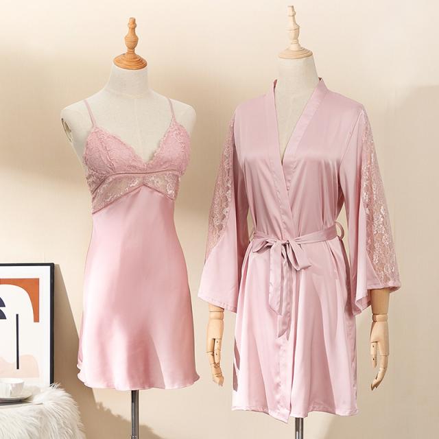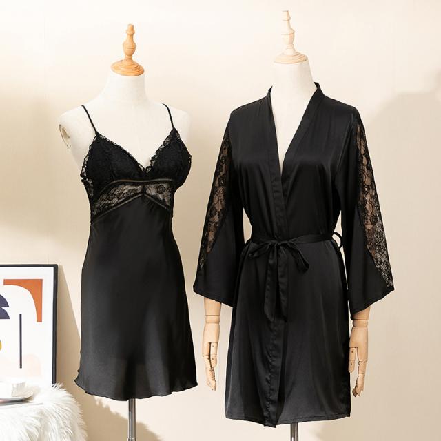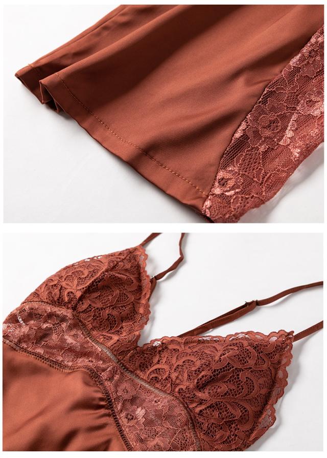 パジャマ サテン セクシー 寝巻き 部屋着 ルームウェア レディース 2点セット 可愛い ランジェリー レース カップ付き 春秋 柔らかい プレゼント