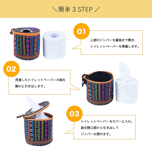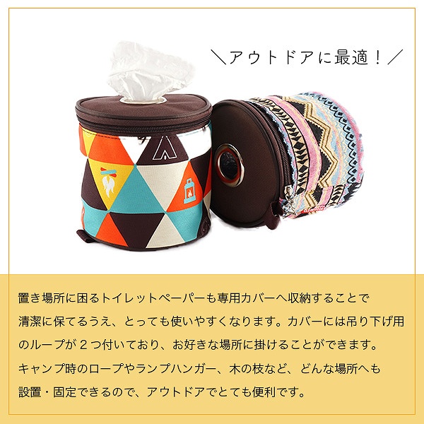 トイレットペーカーカバー アウトドア キャンプ 折りたたみ トイレットペーパー カバー かわいい ティッシュボックス おしゃれ オシャレケース エスニック柄 agesugi_snk