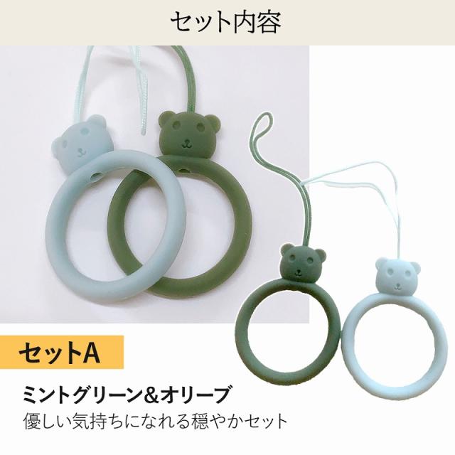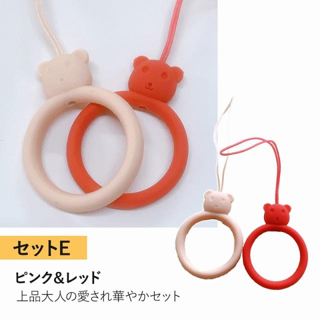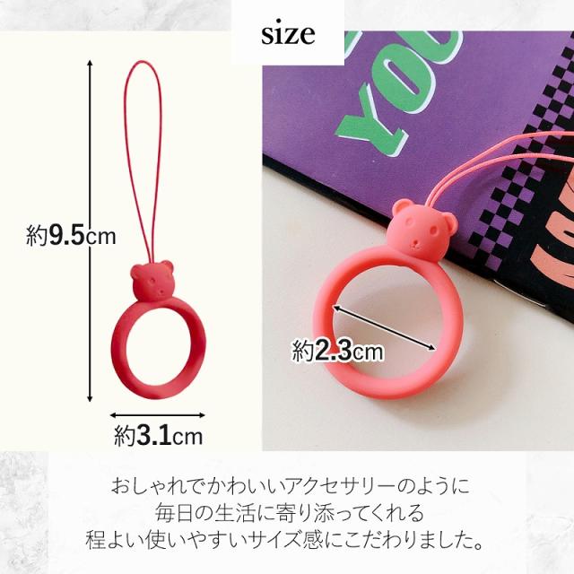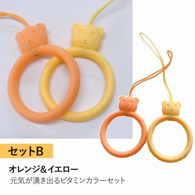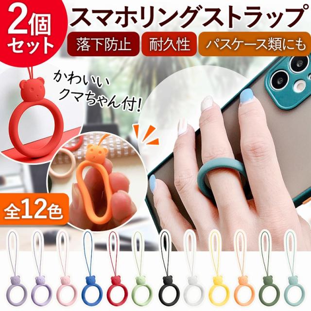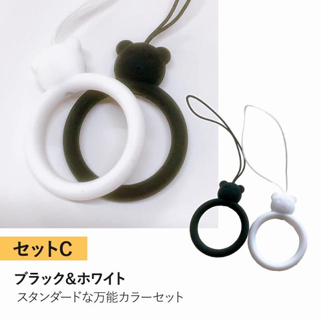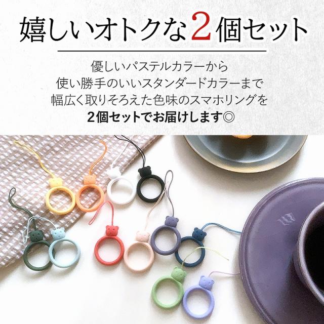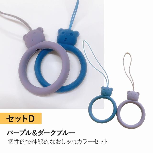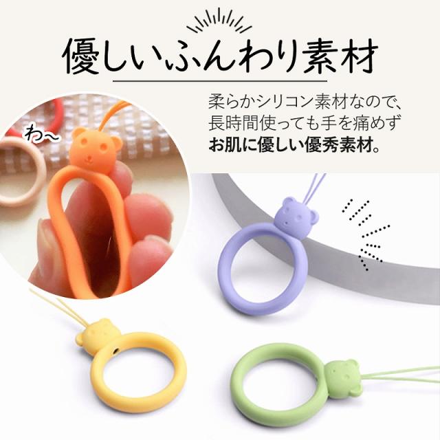 スマホリング 2個セット ストラップ 落下防止 おしゃれ かわいい クマ アニマル ホールドリング スマホストラップ シリコン キャラクター iphone モバイル agesugi_ssm