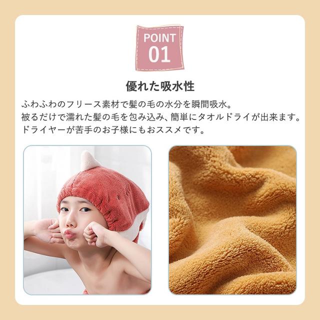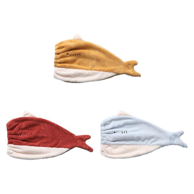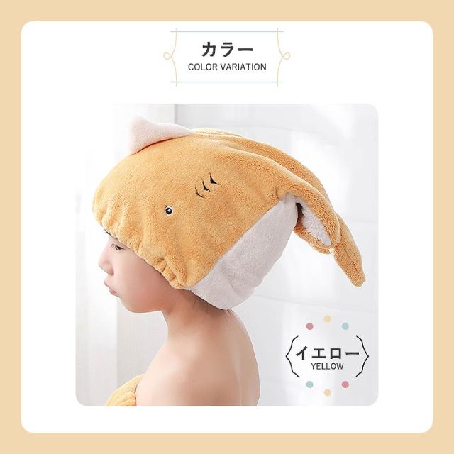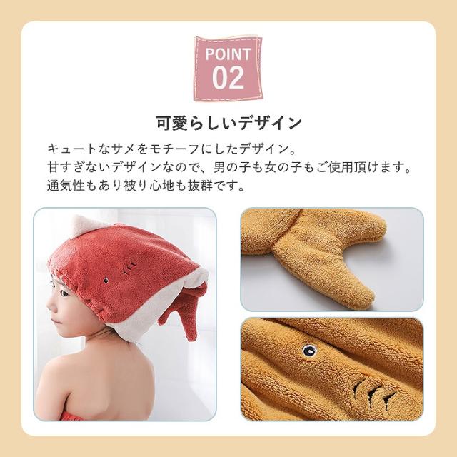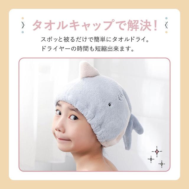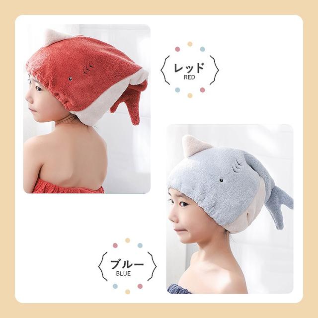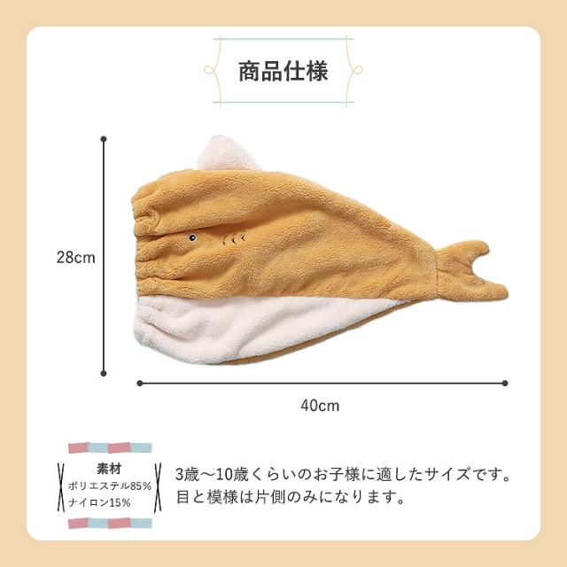 キッズタオルキャップ ヘアキャップ ヘアタオル タオル 吸水 速乾 伸縮性 伸びる 柔らかい キッズ 子供用 男の子 女の子 魚 サメ イエロー レッド ブルー 3色 agesugi_snk
