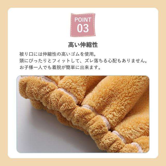 ふわふわの肌触りの良い生地で髪の毛の水分を吸水するので、ドライヤーの時間も短縮出来ます。