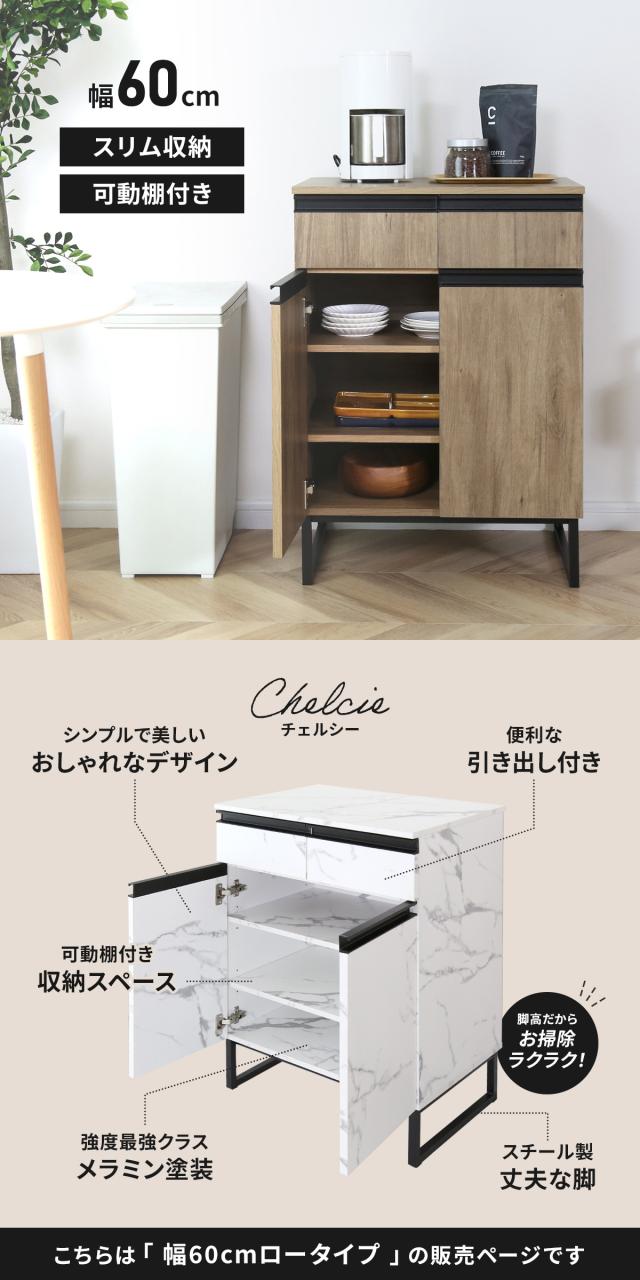 レンジ台 食器棚 キッチン収納 キッチンカウンター 幅60cm キッチンボード 収納 チェルシーロータイプ60 インテリア家具 おすすめ おしゃれ 北欧 big_ki プレゼント tm