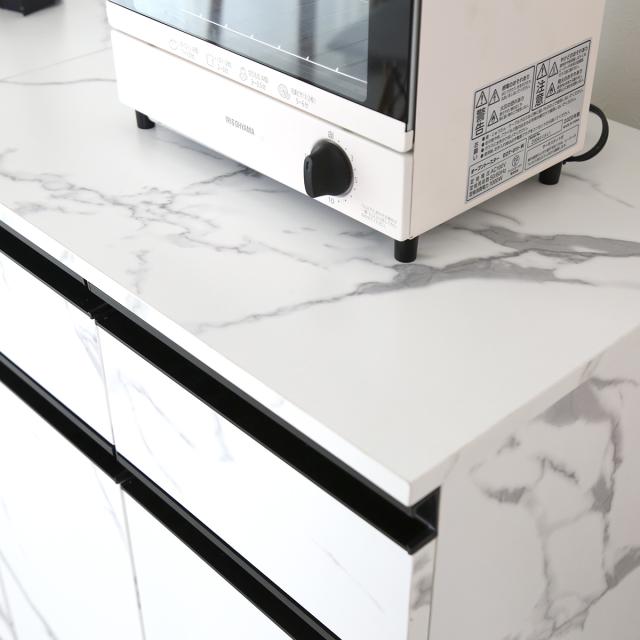 長くご愛用いただくために、表面には傷や汚れに強いメラミン加工を施しています。汚れてもサッと拭き取るだけの簡単なお手入れで、美しい状態を長く維持できます。耐久性にも優れているので、汚れやすいキッチンでのデイリー使いやレンジ台としての使用も安心です。