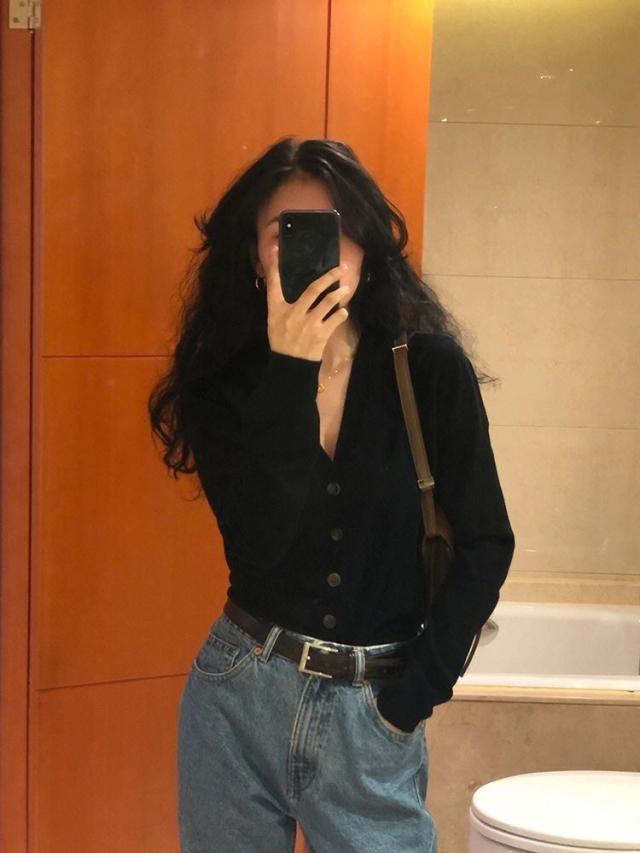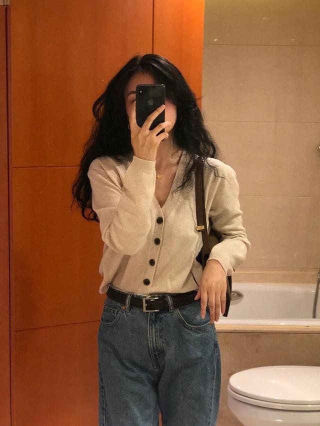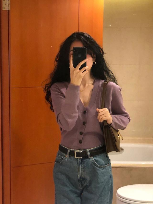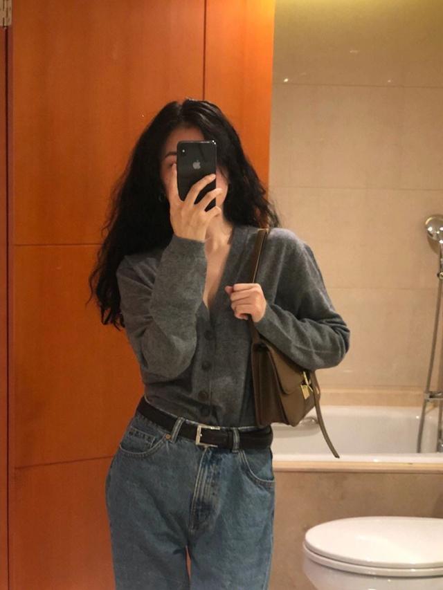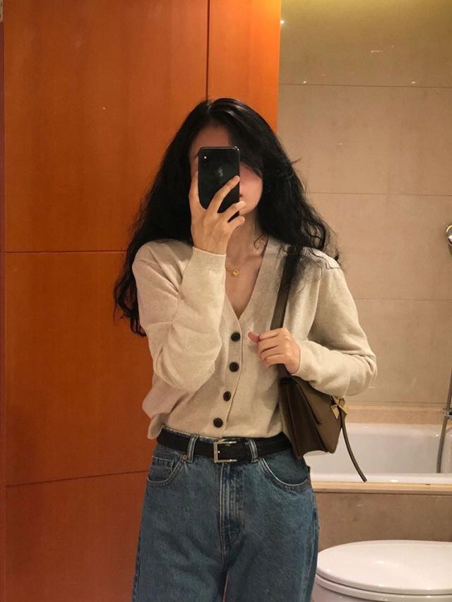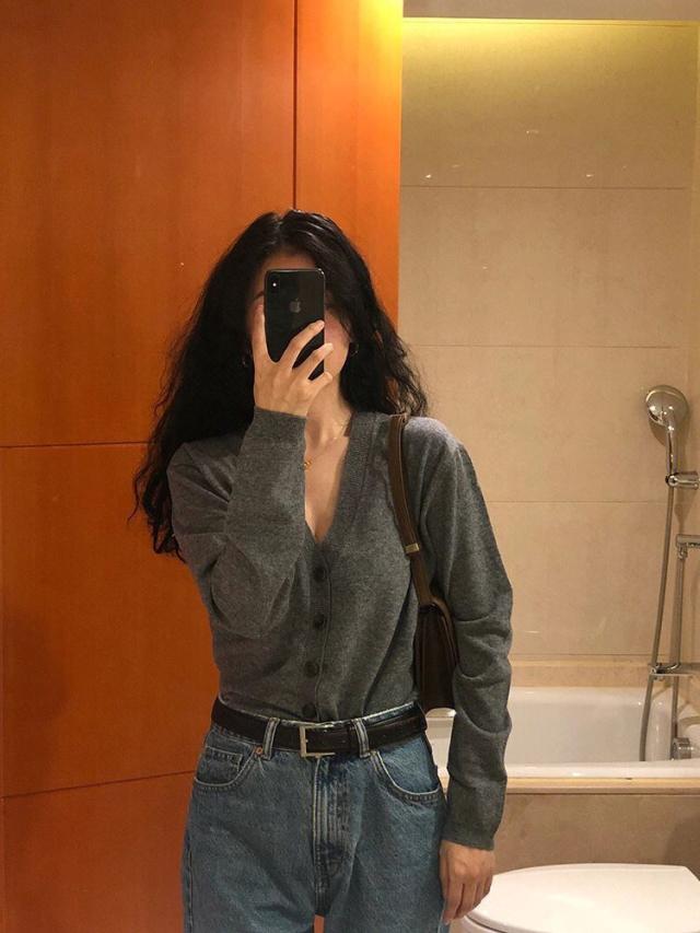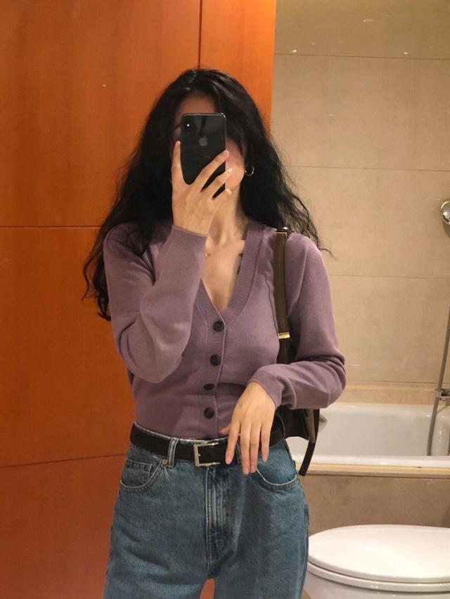 鎖骨や首回りが美しく見えるVネックの開き具合にこだわったカーディガン。