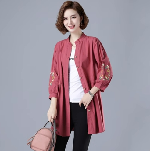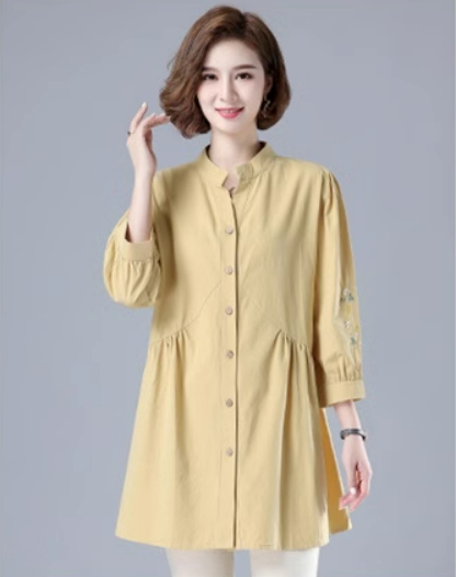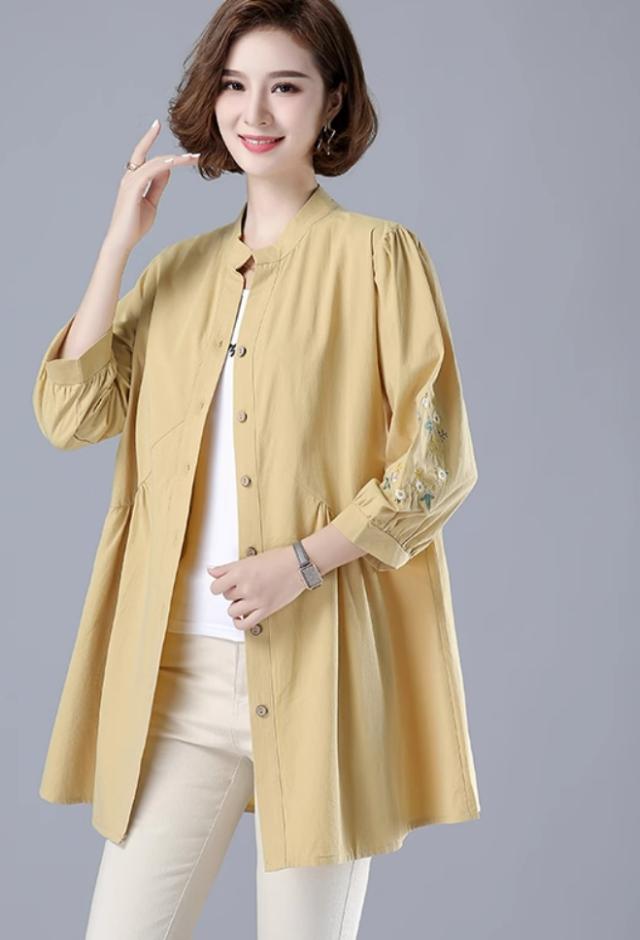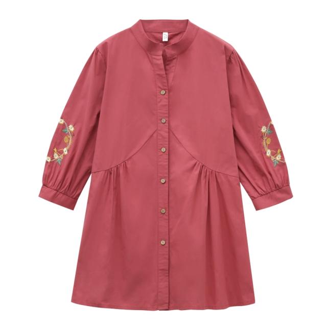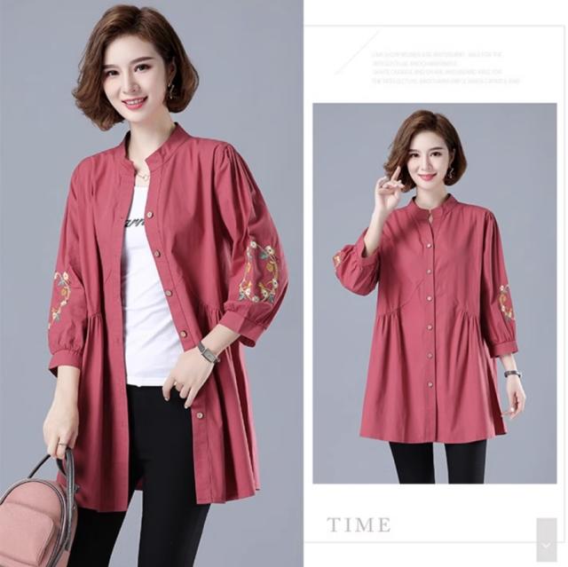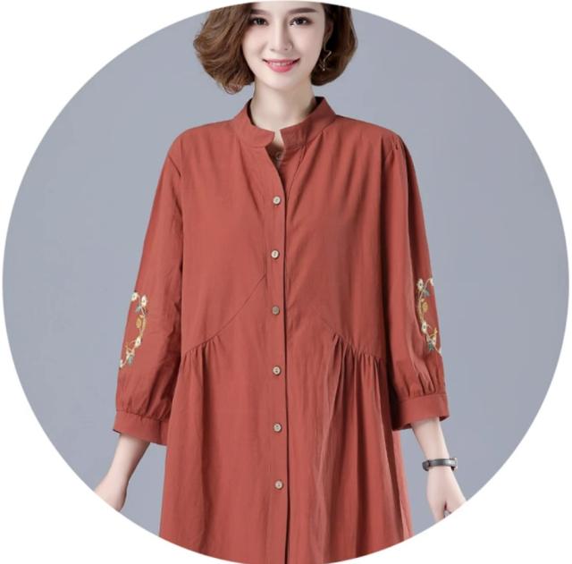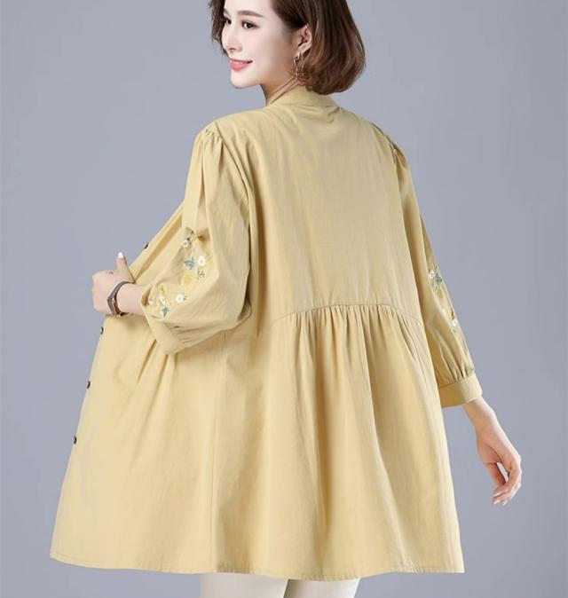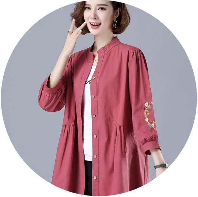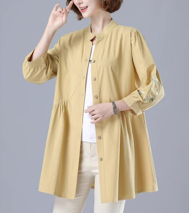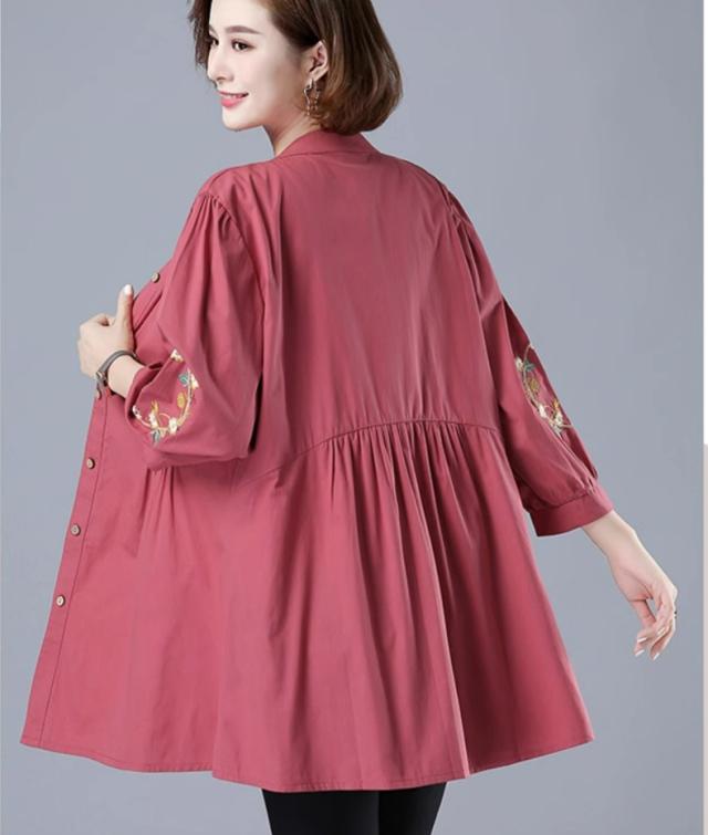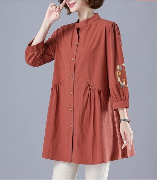 刺繍ブラウス トップス シャツ ブラウス チュニック 羽織り 7分袖 七分袖 スタンドカラー バンドカラー 刺繍 前開き ボタン留め かわいい 大人可愛い おしゃれ お洒落 レトロ アジアン エスニック 大人女子 無地 花柄 春 夏 秋 30代 40代 50代 ママ ミドル お出かけ 公園デビュー 休日 旅行 着回し 普段使い 重ね着 コーデ サイズ展開 M L XL 2XL 3XL 4XL 大きいサイズ 大きめ ビッグサイズ 色展開 赤 レッド 黄色 イエロー オレンジ 大人カラー 春カラー 秋カラー