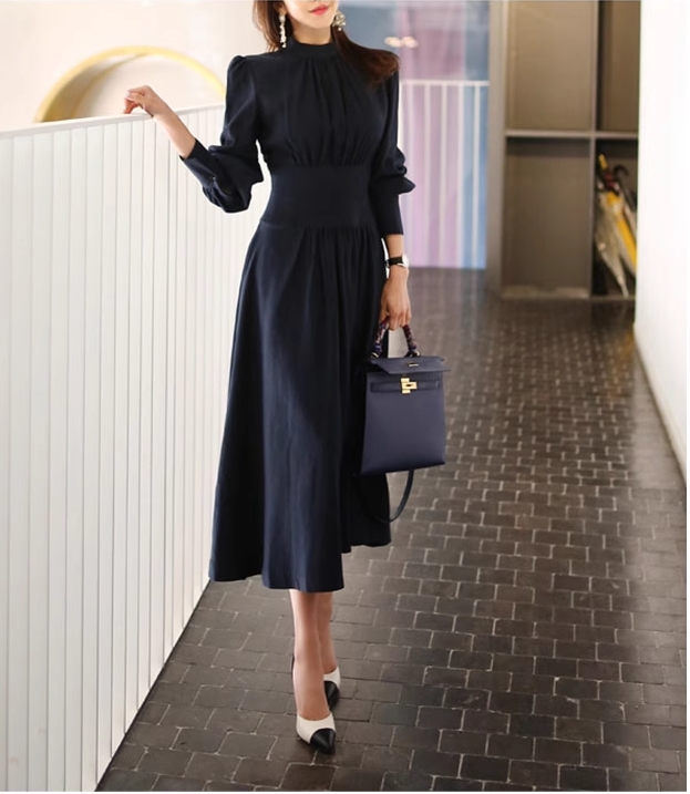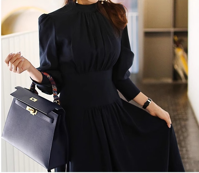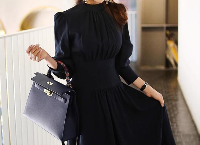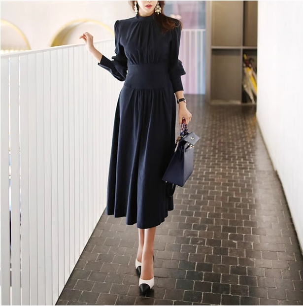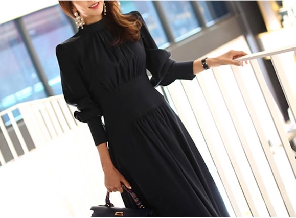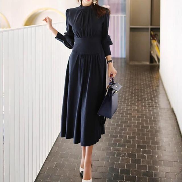 プチハイネック プリーツ 切り替え ワンピ ワンピース ロング ロング丈 長袖 パフスリーブ ハイネック 襟なし フレア ウエストマーク 切り替えデザイン ハイウエスト かわいい 大人可愛い きれいめ シンプル 大人 上品 おしゃれ 大人女子 こなれ感 クール モード系 エレガント モダン 主役級 フォーマル とろみ感 無地 春 秋 冬 入学式 入園式 卒業式 卒園式 謝恩会 10代 20代 30代 40代 50代 60代 オフィス ビジネス OL 通勤 学生 通学 デート お出かけ 休日 パーティー