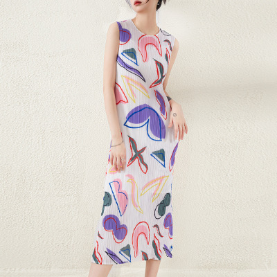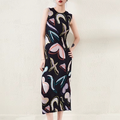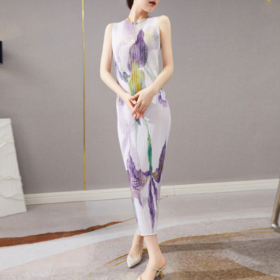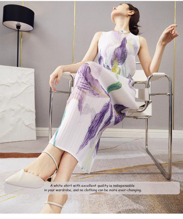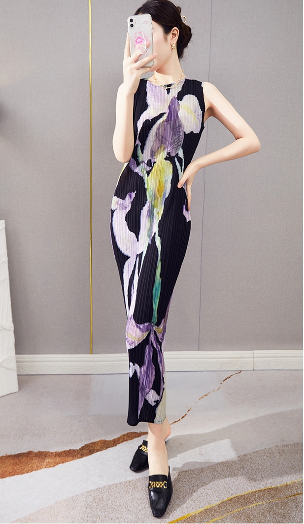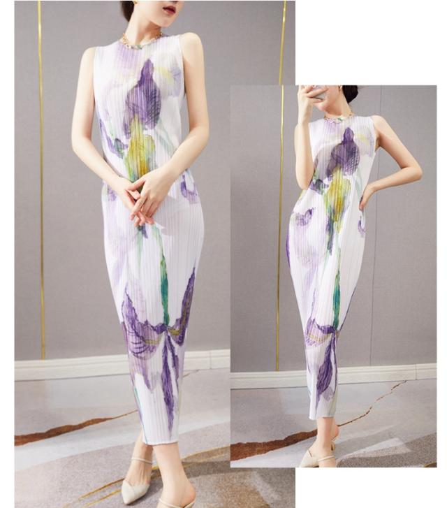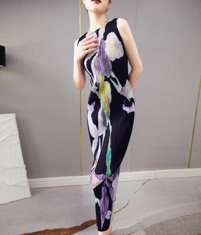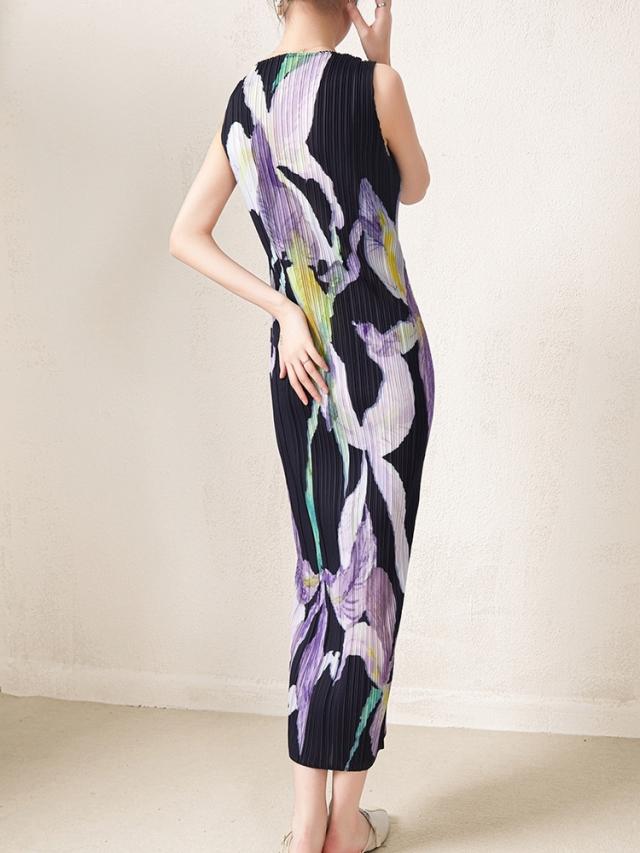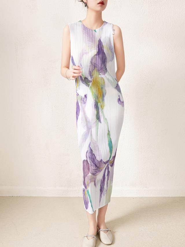 プリーツ ノースリーブ ワンピ ワンピース ワンピドレス ロング ロング丈 マキシ マキシ丈 アンクル丈 袖なし クルーネック 襟なし Iライン かわいい 大人可愛い きれいめ カジュアル 大人 上品 おしゃれ お洒落 大人女子 こなれ感 クール モード系 セクシー エレガント モダン 主役級 存在感 フォーマル とろみ感 抜け感 柄 フラワー 夏 10代 20代 30代 40代 50代 60代 レディース OL 通勤 学生 通学 デート お出かけ 女子会 休日 パーティー 着回し 普段使い 流行