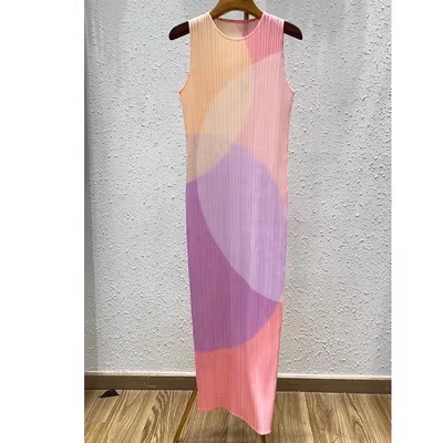 プリーツ ノースリーブ ワンピ ワンピース ワンピドレス ロング ロング丈 マキシ マキシ丈 アンクル丈 袖なし クルーネック 襟なし Iライン かわいい 大人可愛い きれいめ カジュアル 大人 上品 おしゃれ お洒落 大人女子 こなれ感 クール モード系 セクシー エレガント