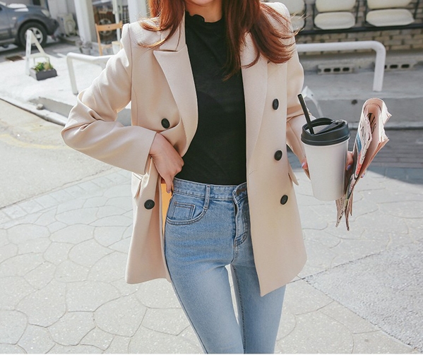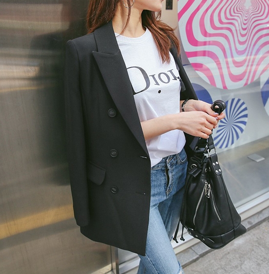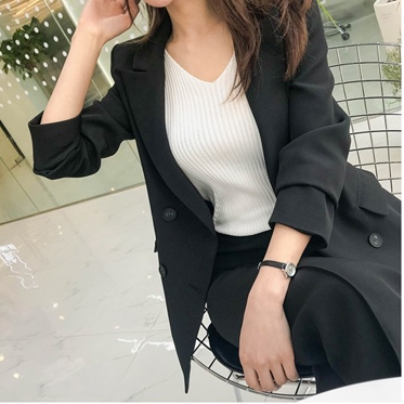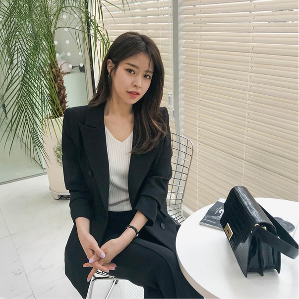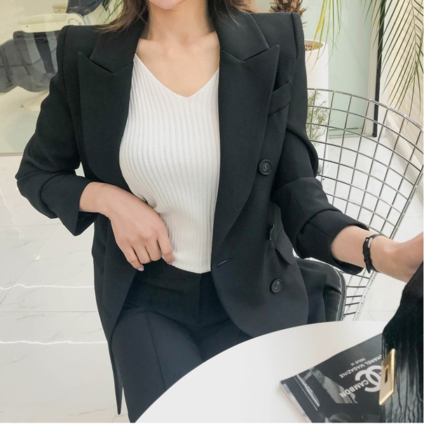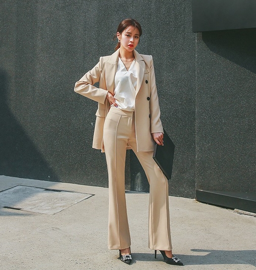 ロング丈テーラードジャケットとフレアパンツの上品でかっこいいマニッシュなスーツセット。