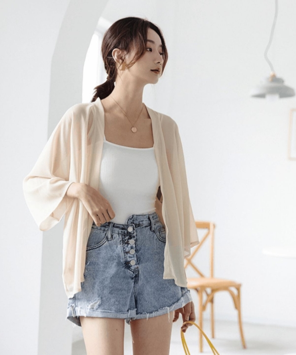 夏や秋の時期に、さらっと羽織れる、薄着のカーディガン。