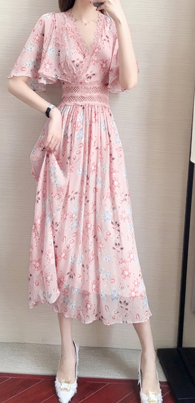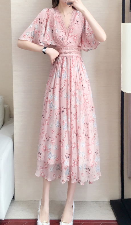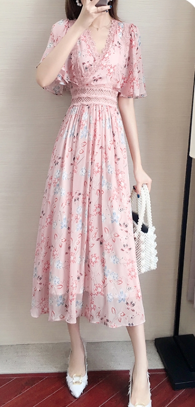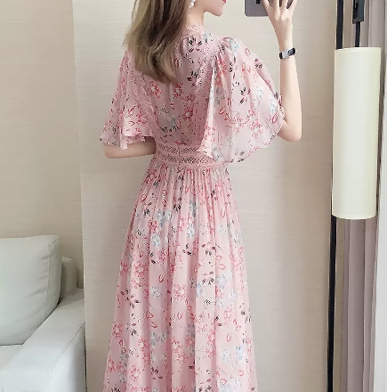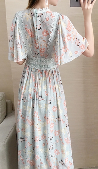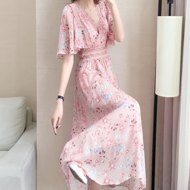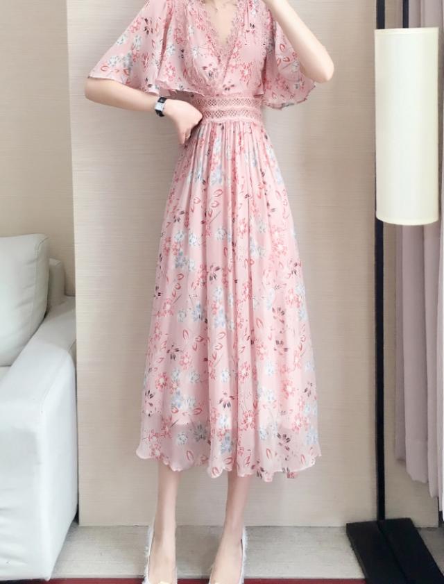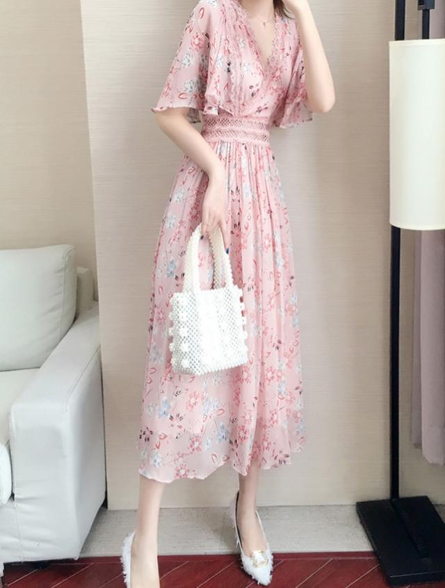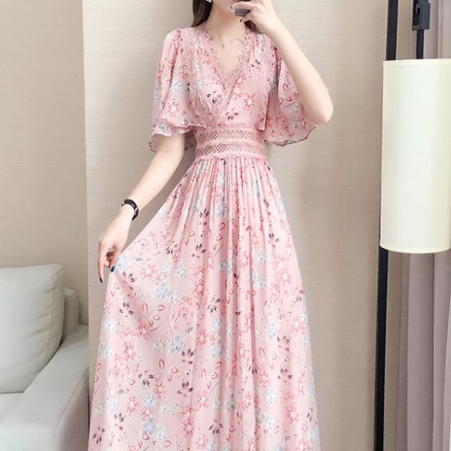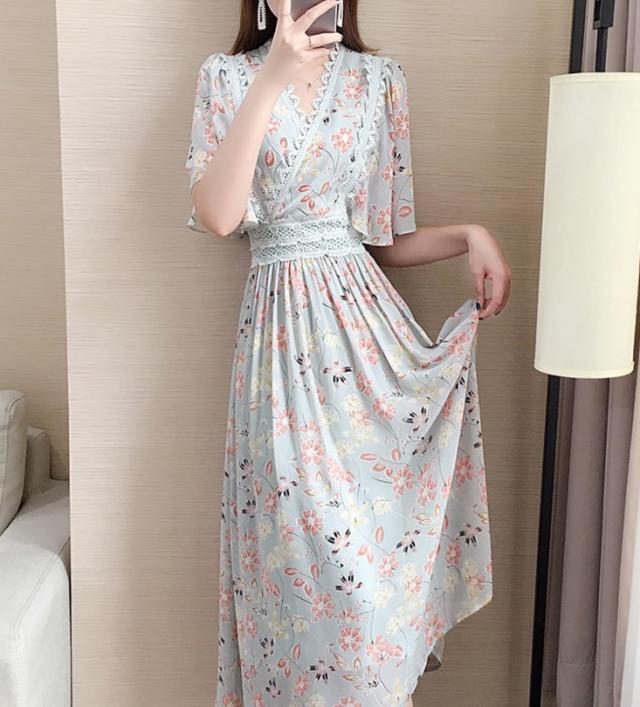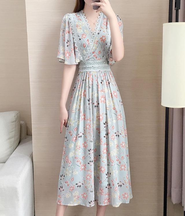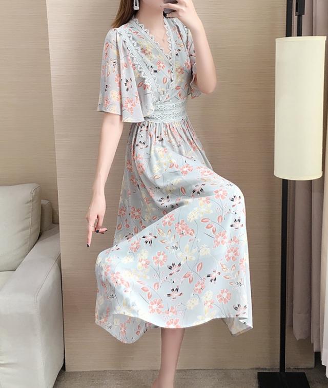 ワンピース ワンピドレス ロング ロング丈 袖あり 半袖 フレアスリーブ カシュクール 襟なし セミフレア Aライン シフォン ハイウエスト 綿 かわいい 大人可愛い きれいめ シンプル 大人 上品 おしゃれ お洒落 かっこいい アジアン エスニック エキゾチック 大人女子 エレガント フォーマル 柄 花柄 夏 秋 10代 20代 レディース 女性用 デート お出かけ 公園デビュー 女子会 休日 パーティー イベント リゾート 旅行 ガーデン レストラン 普段使い サイズ L XL 色展開 ピンク 水色