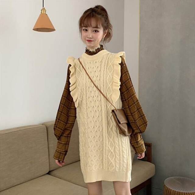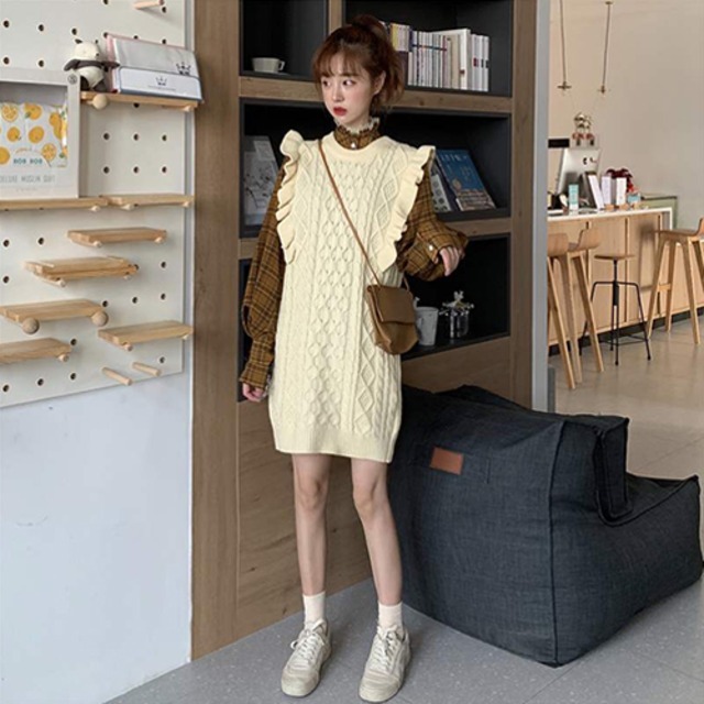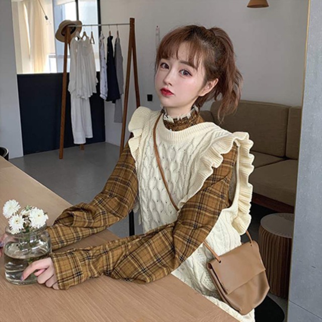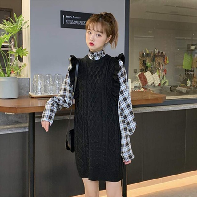 セットアップ ツーピース 2点セット ニットセーターベスト チェック柄シャツ 袖あり 長袖 ラウンドネック 襟なし フリル ポケット 前開き 上下セット きれいめ シンプル カジュアル おしゃれ お洒落 かっこいい 大人女子 クール 楽ちん 無地 柄 春 秋 冬 10代 20代 30代 40代 レディース 女性用 OL 通勤 学生 通学 デート お出かけ 女子会 休日 ショッピング 散歩レストラン 着回し 普段使い オルチャンファッション サイズ S M L XL カラー ブラック イエロー