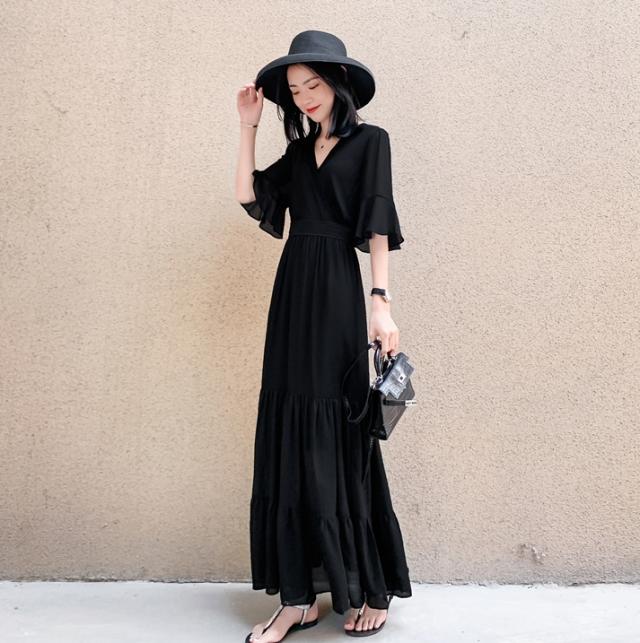 ワンピース ティアードワンピース ワンピドレス ロング丈 袖あり 半袖 ホルンスリーブ カシュクール 襟なし セミフレア Aライン シフォン ハイウエスト 透け感 かわいい 大人可愛い きれいめ シンプル 上品 おしゃれ アジアン エスニック エキゾチック 存在感 フォーマル 無地 柄 花柄 春 夏 秋 20代 30代 レディース 女性用 デート お出かけ 公園デビュー 女子会 休日 パーティー イベント 旅行 ガーデン レストラン 普段使い サイズ S M L XL 2XL 色展開 ブラック ネイビー