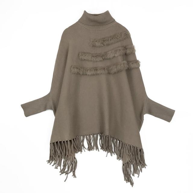 アウター ミドル丈ショール ケープ マントタイプ 羽織り フェイクファー タートルネック バットスリーブ タッセル ふわふわ 毛皮 キラキラ かわいい 大人可愛い きれいめ シンプル カジュアル 上品 おしゃれ 大人女子 こなれ感 ラブリー キュート オールシーズン 無地 秋 冬 10代 20代 30代 40代 女子用 レディース デート 結婚式 休日 パーティースタイル 華やか フェミニン オルチャンファッション コーデ 楽ちん 暖かい ワンサイズ カラー カーキ グレー レッド ブラック