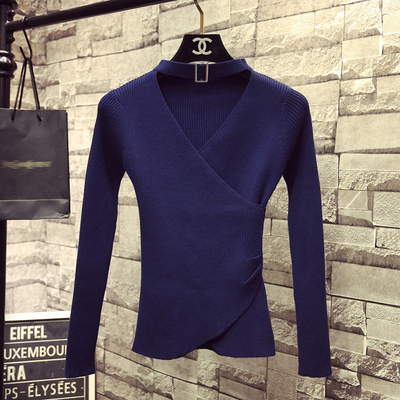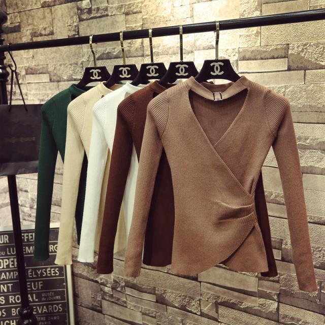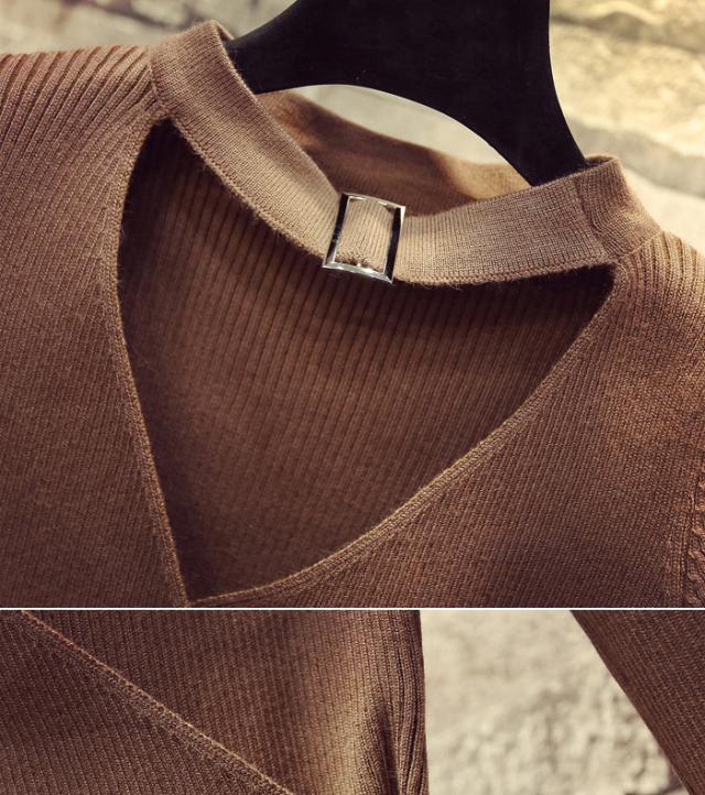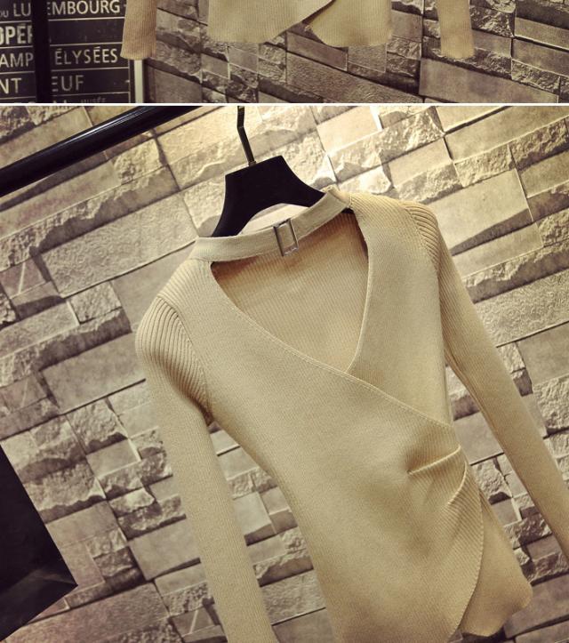 トップス セーター ニット ホルターネック Vネック 長袖 鎖骨見せ プルオーバー スリムフィット シンプル 大人可愛い きれいめ カジュアル 上品 おしゃれ 大人女子 こなれ感 ラブリー キュート シック エレガント モダン 重ね着 無地 春 秋 冬 10代 20代 30代 40代 50代
