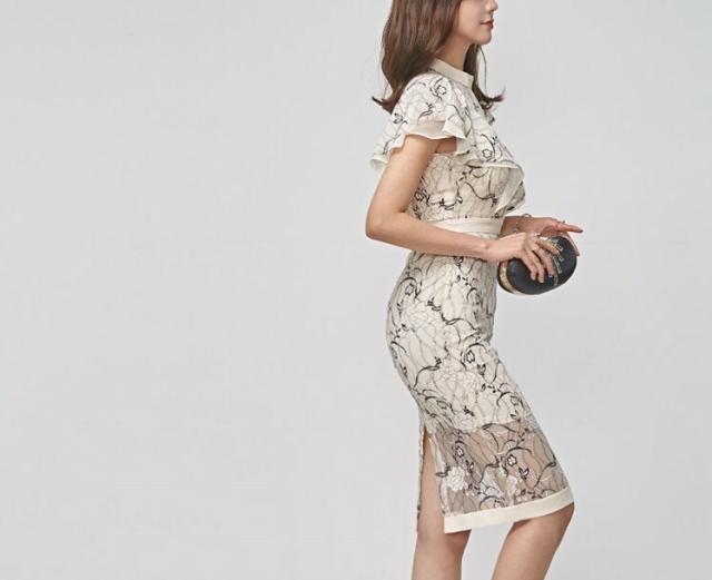ワンピース 膝丈 ひざ丈 膝上 半袖 襟なし タイト フリル かわいい 大人可愛い きれいめ 上品 おしゃれ お洒落 大人可愛い 大人女子 クール 柄 夏 20代 30代 レディース 女性用 デート お出かけ 女子会 休日 ホテル レストラン デート 韓国 韓国系 オルチャン ファッション 美脚 脚長 サイズ S M L XL 色展開 白 ホワイト