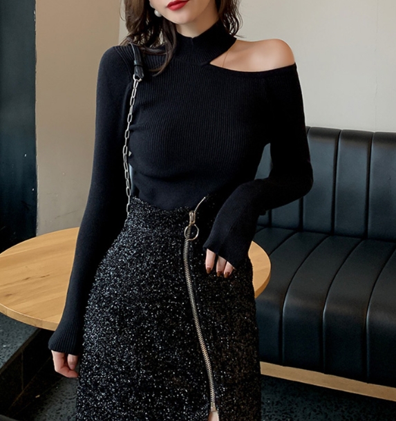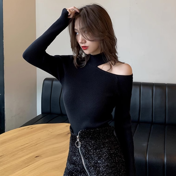 トップス ニットソー ミディアム丈 袖あり 長袖 ハイネック オフショルダー オフショル 襟なし 切り替えデザイン ドッキング かわいい 大人可愛い シンプル 大人 おしゃれ お洒落 アジアン エスニック エキゾチック 大人女子 クール セクシー エレガント 存在感 無地 春 秋 10代 20代 レディース 女性用 デート お出かけ 公園デビュー 女子会 お泊まり 休日 パーティー イベント 旅行 ホテル ガーデン レストラン 普段使い モテ サイズ フリーサイズ 色展開 黒 ブラック