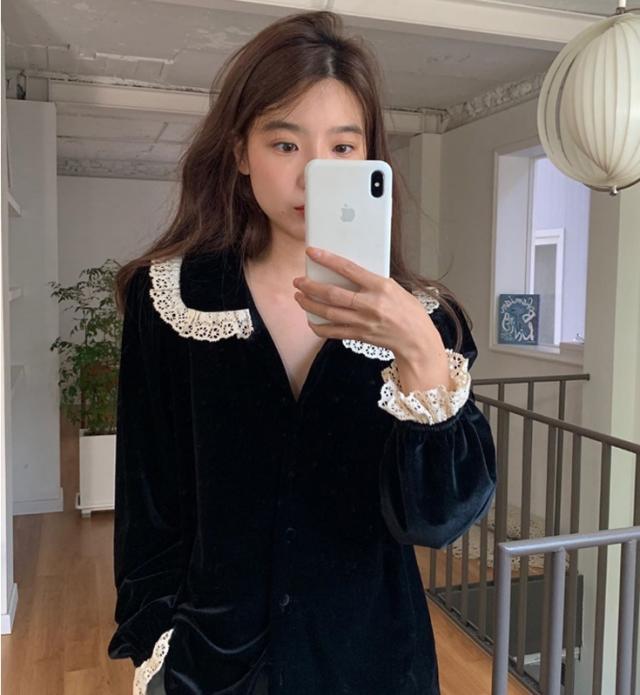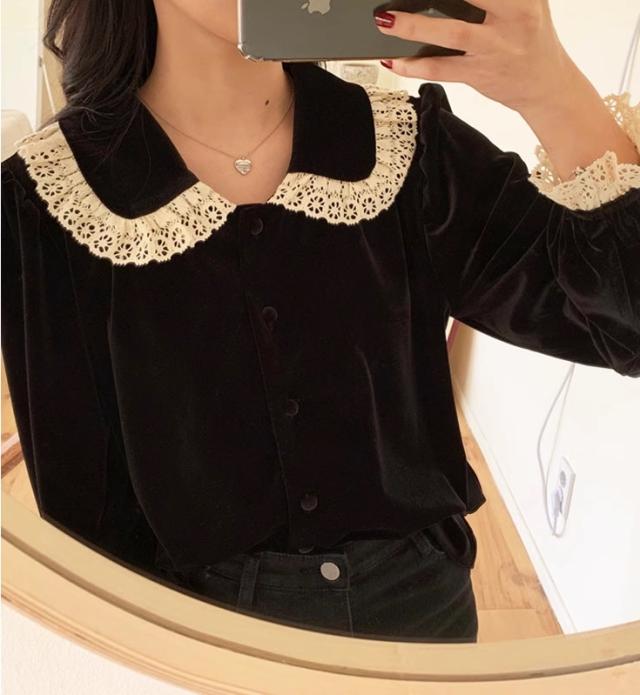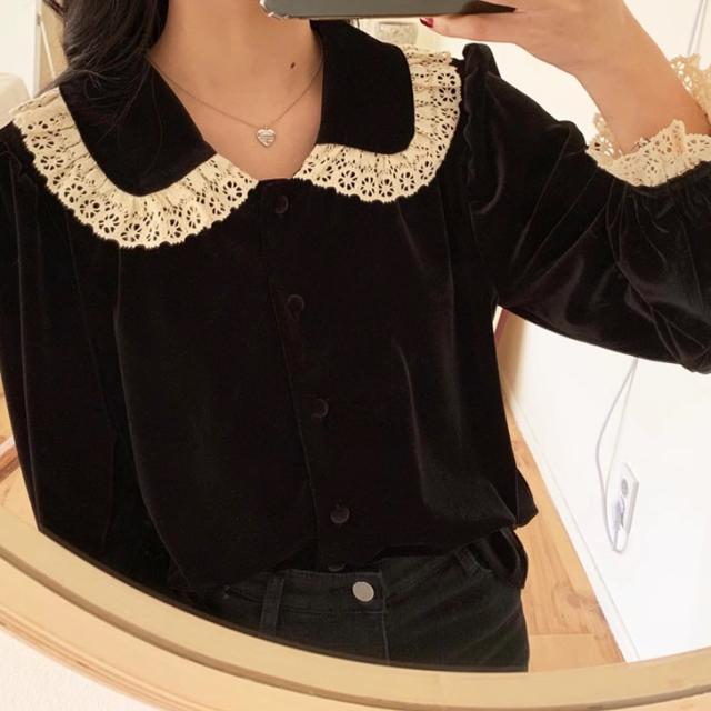 レース襟 レース袖 フェミニン ブラウス トップス ワンピース シャツ 袖あり 長袖 パフスリーブ 襟付き レース 前開き かわいい 大人可愛い きれいめ シンプル カジュアル 大人 上品 おしゃれ 大人女子 こなれ感 ラブリー キュート ガーリー モード系 エレガント モダン 無地 秋 冬 10代 20代 30代 40代 50代 60代 レディース オフィス ビジネス OL 通勤 学生 通学 デート お出かけ 休日 着回し 普段使い モテ トレンド 流行 インスタ映え S M L XL ブラック