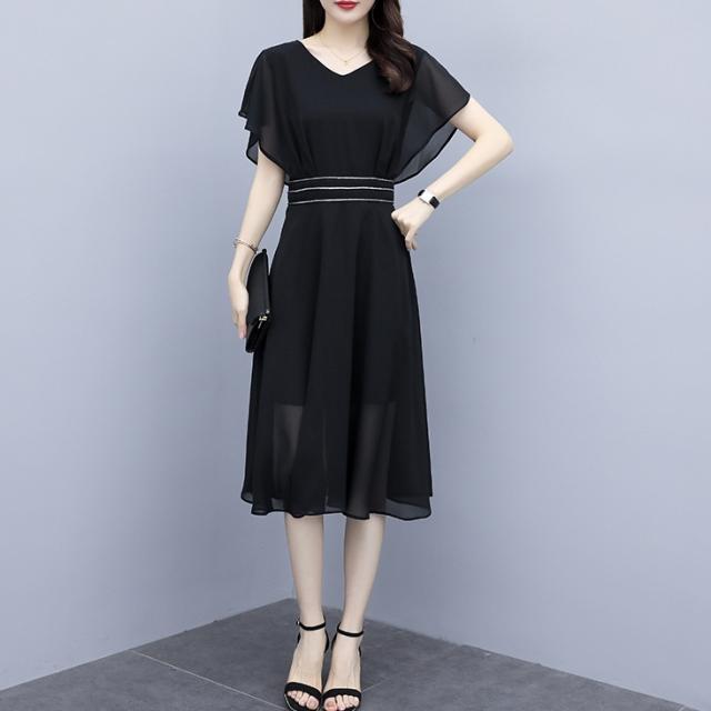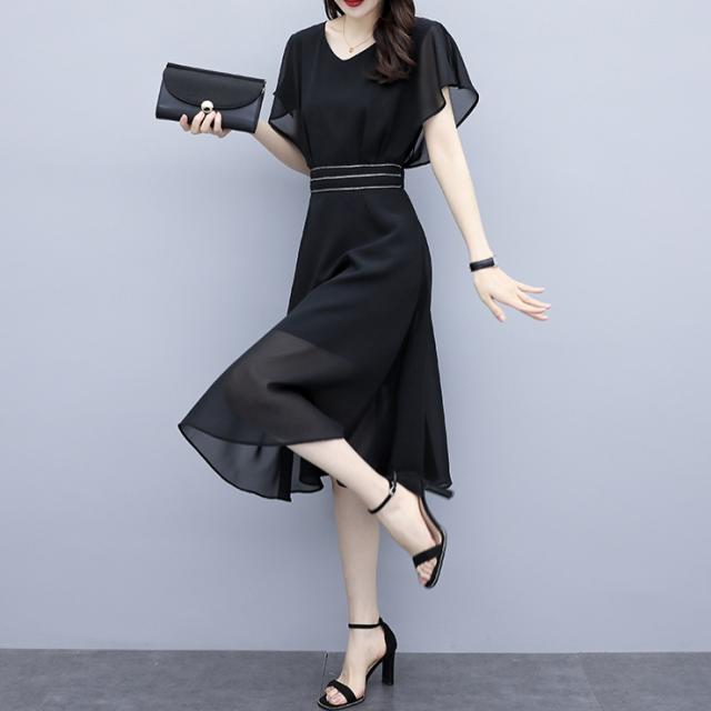 ドレス パーティードレス 演奏会ドレス ステージドレス フォーマルドレス ロング ロング丈 袖あり 半袖 フレアスリーブ Vネック 襟なし Aライン シフォン ファスナー ハイウエスト かわいい 大人可愛い きれいめ 上品 おしゃれ アジアン エスニック エキゾチック エレガント フォーマル 無地 20代 30代 レディース 女性用 デート お出かけ 女子会 休日 パーティー イベント レストラン 夏 秋 お呼ばれ サイズ L XL 2XL 3XL 4XL 5XL 大きいサイズ 色展開 黒 ブラック