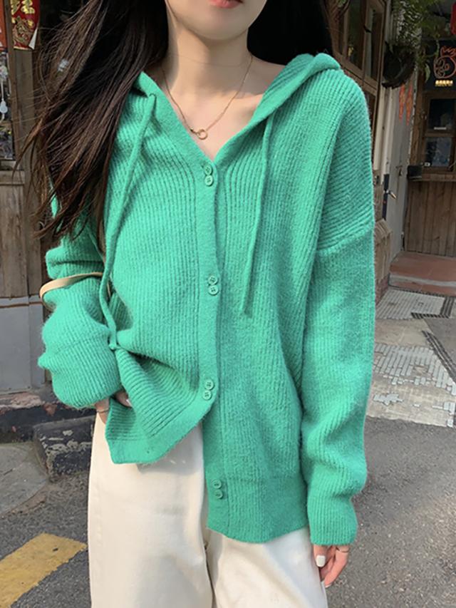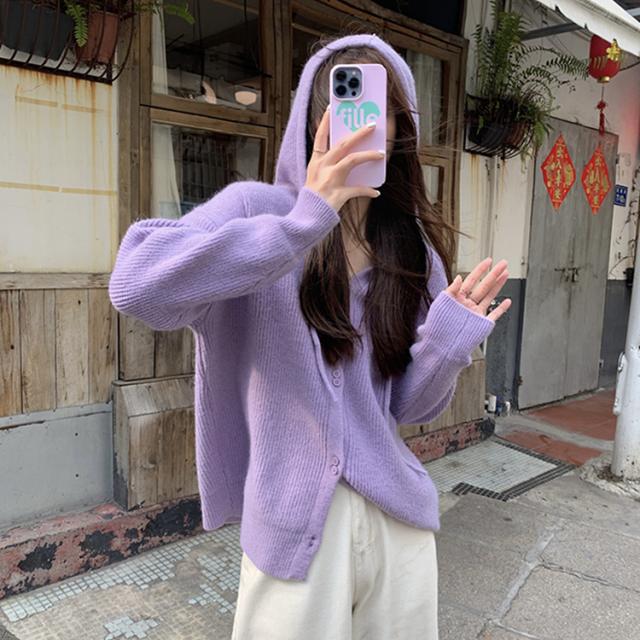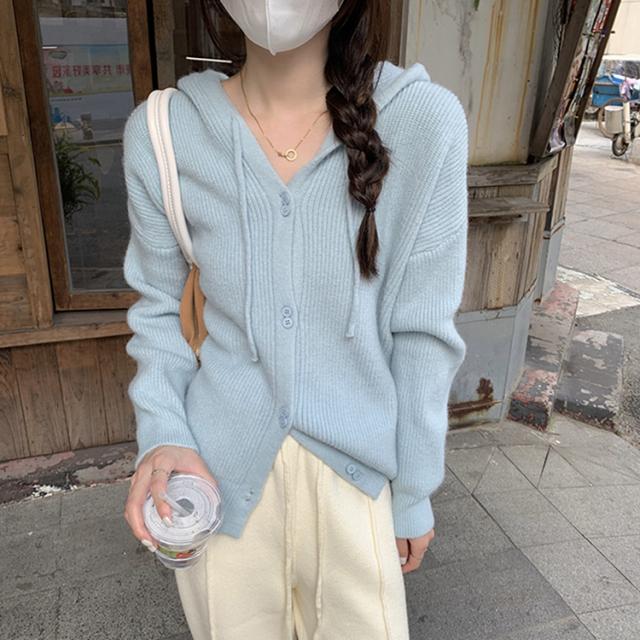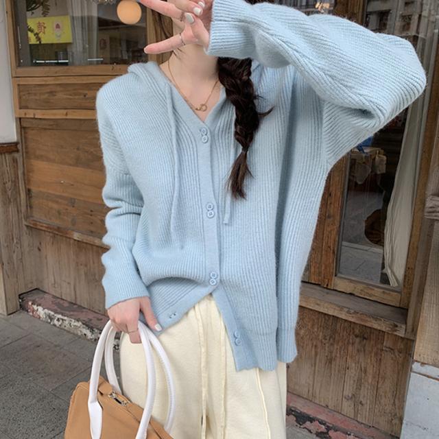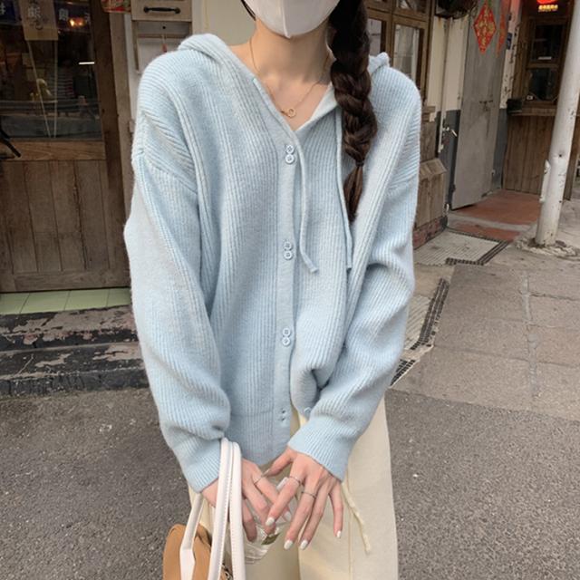 トップス アウター セーター パーカー 袖あり 長袖 萌袖 フーディー もこもこ モコモコ フード付き 前開き ボタン ニット かわいい 可愛い シンプル カジュアル おしゃれ お洒落 大人可愛い 大人女子 こなれ感 無地 秋 冬 10代 20代 30代 40代 ママ OL 学生 お出かけ 休日 着回し 普段使い 重ね着 韓国系 オルチャン ファッション コーデ スタイル 暖かい トレンド フリーサイズ ゆったり ゆる 色展開 白 ホワイト 黒 ブラック ブルー 水色 緑 グリーン ピンク カラバリ