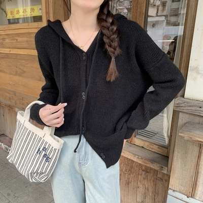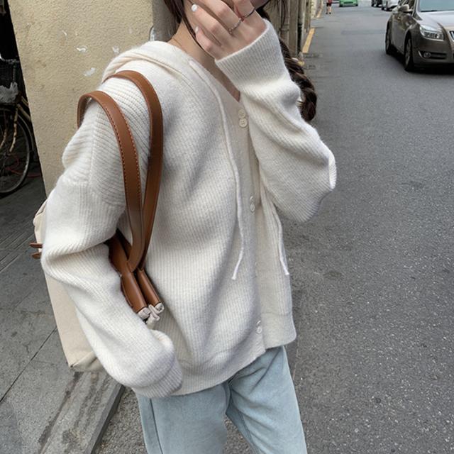 トップス アウター セーター パーカー 袖あり 長袖 萌袖 フーディー もこもこ モコモコ フード付き 前開き ボタン ニット かわいい 可愛い シンプル カジュアル おしゃれ お洒落 大人可愛い 大人女子 こなれ感 無地 秋 冬 10代 20代 30代 40代 ママ OL 学生 お出かけ 休日