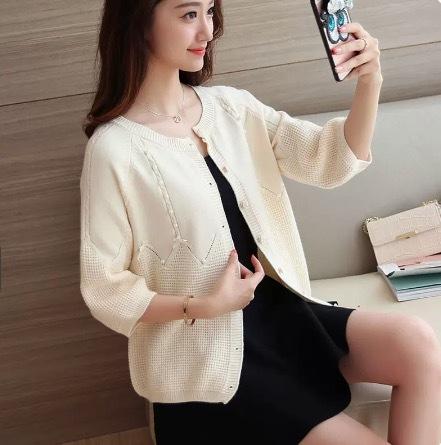 トップス カーディガン 上着 白トップス ミディアム丈 袖あり 7分袖 七分袖 長袖 ボリューム袖 襟なし フレア セミフレア 細身 ストレート Aライン Iライン スマート 前開き 編み込み 伸縮性 かわいい 大人可愛い きれいめ シンプル カジュアル 上品 おしゃれ お洒落 レトロ