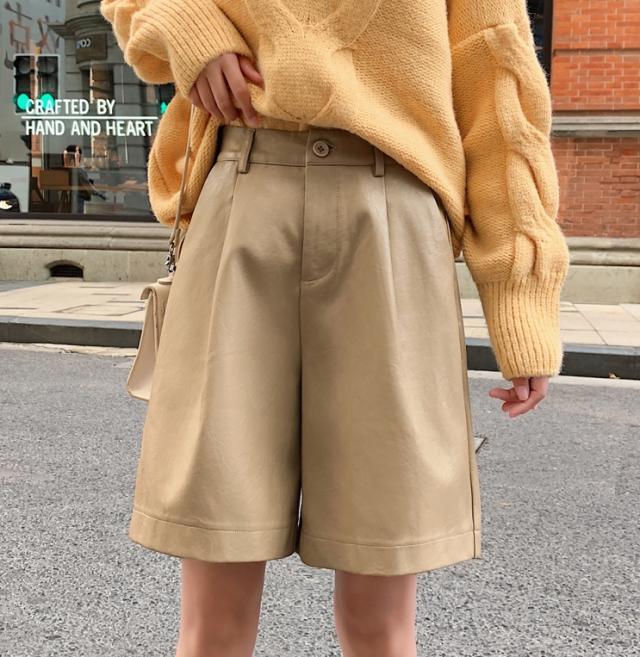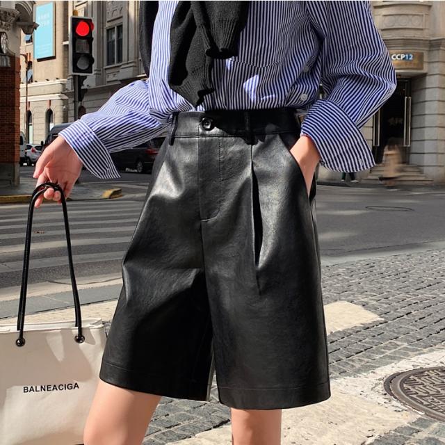 フェイクレザー ショートパンツ ボトムス パンツ ズボン ショート ショート丈 膝上 ワイド ファスナー ポケット ハイウエスト かわいい 大人可愛い きれいめ シンプル カジュアル 大人 上品 おしゃれ かっこいい 大人女子 こなれ感 メンズライク マニッシュ ボーイッシュ 個性的 クール モード系 存在感 抜け感 無地 春 夏 10代 20代 30代 40代 学生 通学 デート お出かけ 休日 着回し 普段使い モテ 体系カバー トレンド 流行 インスタ映え S M L XL 2XL 3XL 3色展開