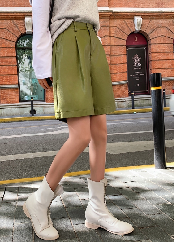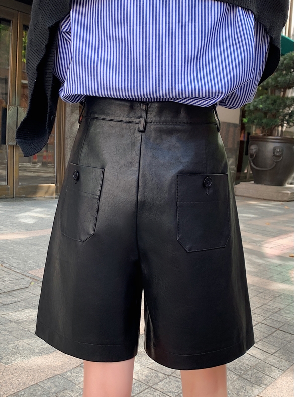 フェイクレザー ショートパンツ ボトムス パンツ ズボン ショート ショート丈 膝上 ワイド ファスナー ポケット ハイウエスト かわいい 大人可愛い きれいめ シンプル カジュアル 大人 上品 おしゃれ かっこいい 大人女子 こなれ感 メンズライク マニッシュ ボーイッシュ