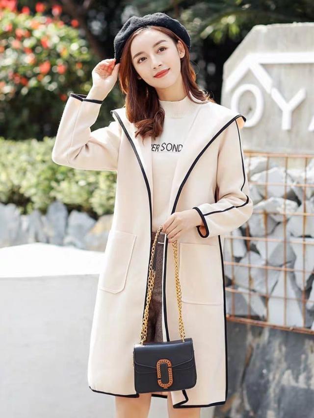 パイピングコード フード付きコート ミドル丈コート アウター コート ミディアム丈 ミドル丈 袖あり 長袖 フーディー フード付き 細身 ストレート スマート コクーンワンピース シフォン 前開き パイピング 厚手 かわいい 大人可愛い きれいめ シンプル カジュアル 大人