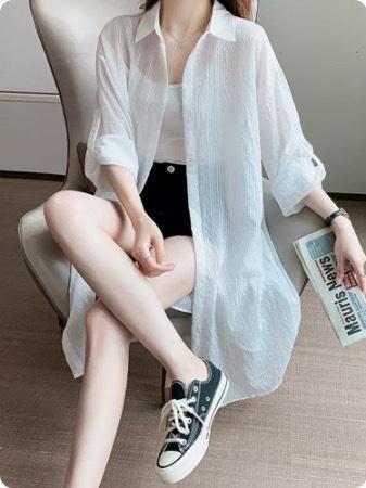 トップス ワンピース デート シャツ カーディガン 上着 白シャツ 白トップス シャツワンピース フレアワンピース ワンピドレス ミモレ ミモレ丈 ミディアム丈 袖あり 7分袖 七分袖 長袖 ボリューム袖 フレアスリーブ ホルンスリーブ 萌袖 襟付き フレア セミフレア 細身 ストレート ワイド Aライン Iライン 切り替えデザイン スマート 前開き 薄手 かわいい 大人可愛い きれいめ シンプル カジュアル 上品 おしゃれ お洒落 こなれ感 ラフ ラブリー キュート ガーリー モード系 エレガント