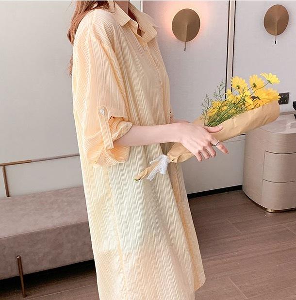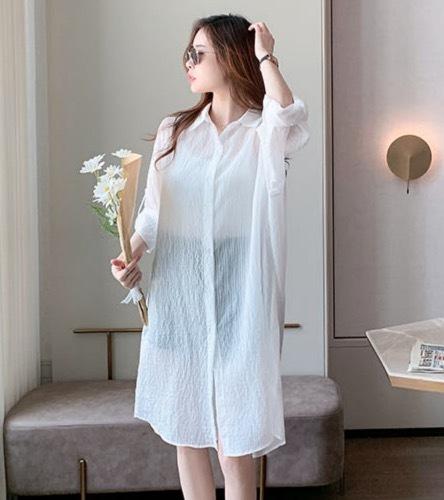 薄手でカーディガンとしても着まわせるシャツワンピース です。