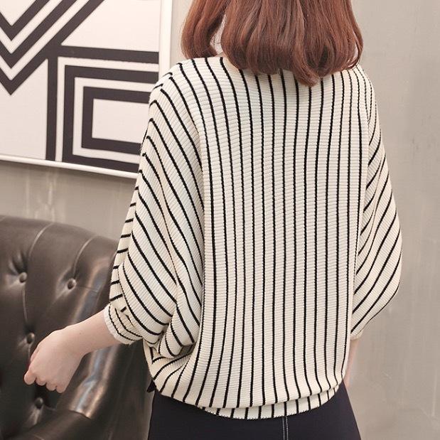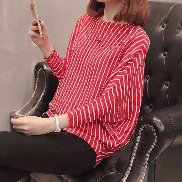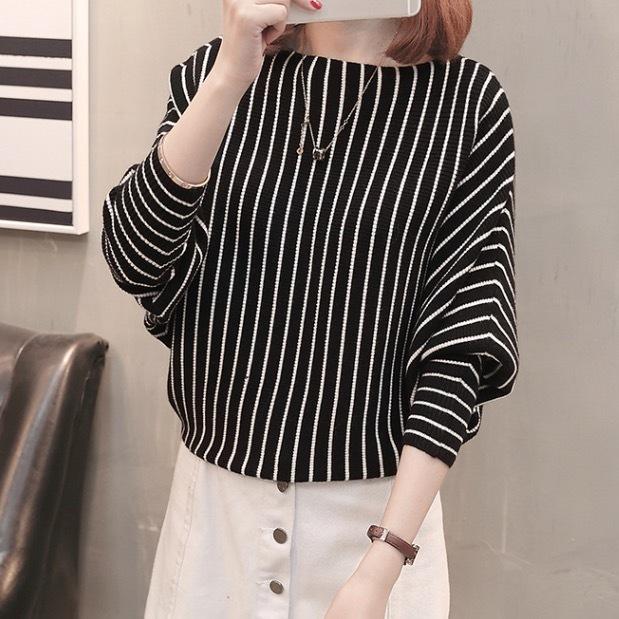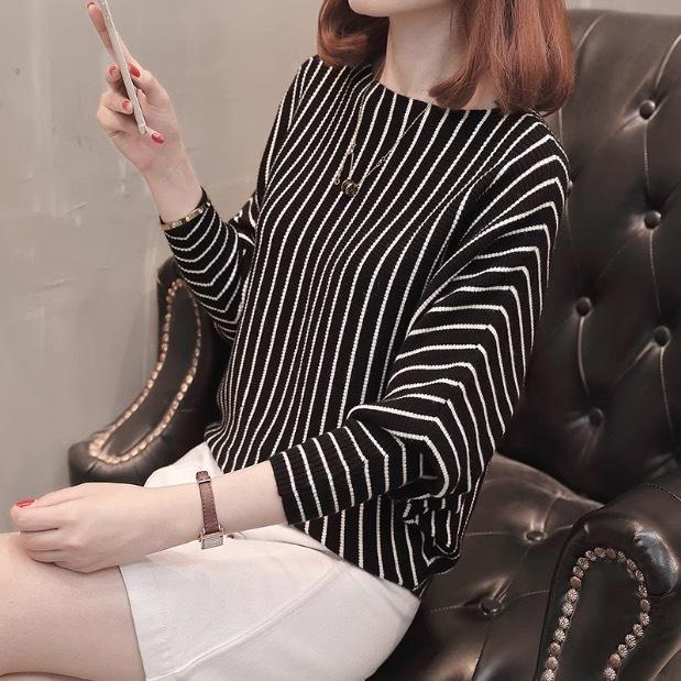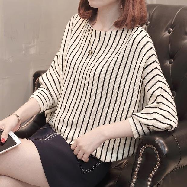 ストライプのきれいめ長袖カットソー。