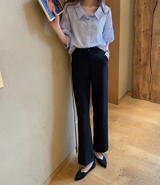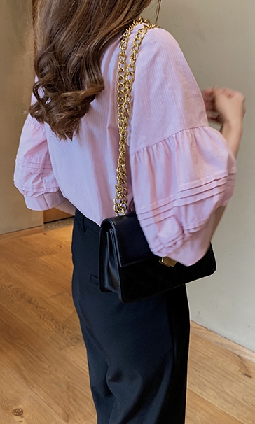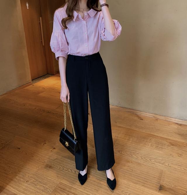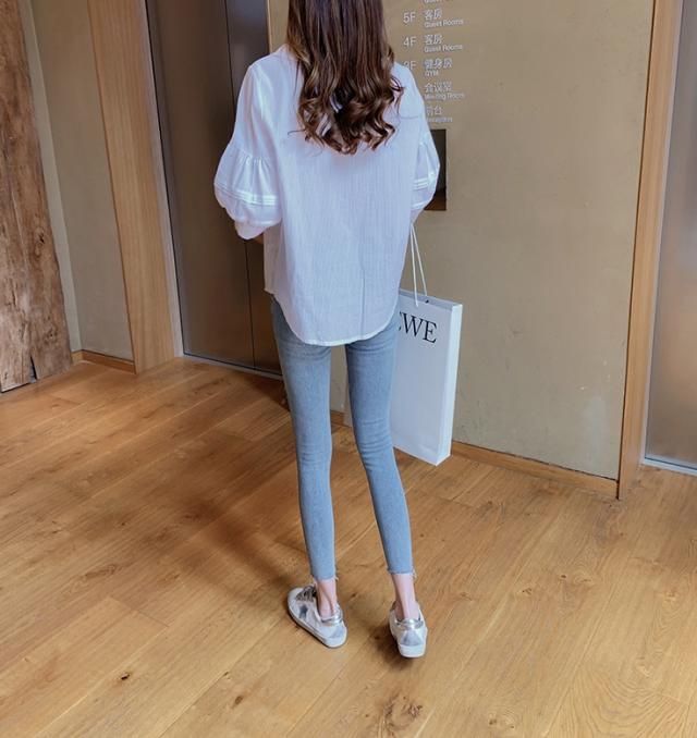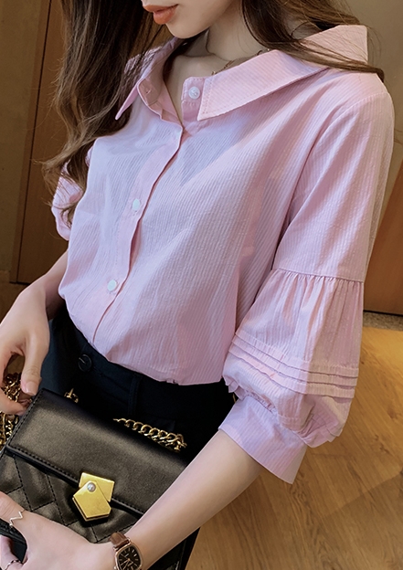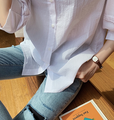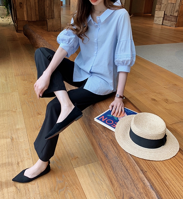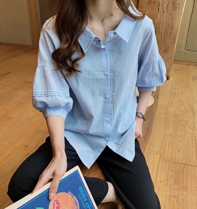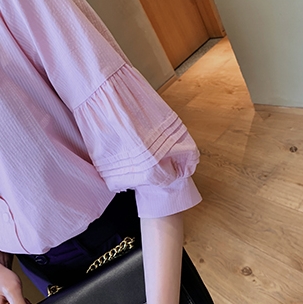 ボリューム袖がおしゃれで可愛い、五分袖シャツ。