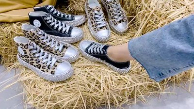 積極的で自信ありげなスタイリングに欠かせない一足、それが当店の厚底ハイカットスニーカーです。厚底デザインが美脚&脚長効果を発揮し、ソールにはラインストーンがあしらわれていてブラックとヒョウ柄の2色をお選びいただけます。カジュアルな装いはもちろん、きちんと感のあるコーディネートにも合わせやすく、オールシーズン着用可能です。しかも、痛くない、歩きやすいデザインなので、快適な着用感を実現しています。