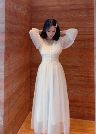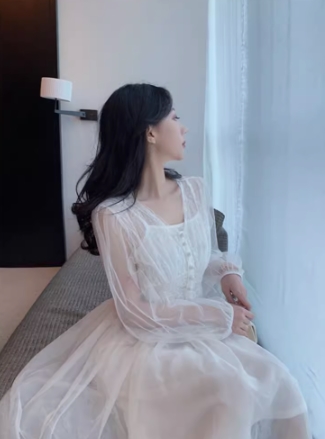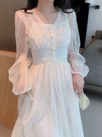 ワンピース シフォンワンピース フレアスカート ロングワンピース 重ね着 くるみボタン シースルー 透け感 Vネック 膝下 ロング丈 袖あり 長袖 襟なし 体型カバー スリムフィット ストレート Aライン スマート ウエストマーク ハイウエスト かわいい 大人可愛い きれいめ シンプル カジュアル 上品 おしゃれ お洒落 レトロ ナチュラル ラフ キュート ガーリー 春 秋 10代 20代 30代 40代 レディース ショッピング 大きいサイズ サイズ S M L XL ホワイト